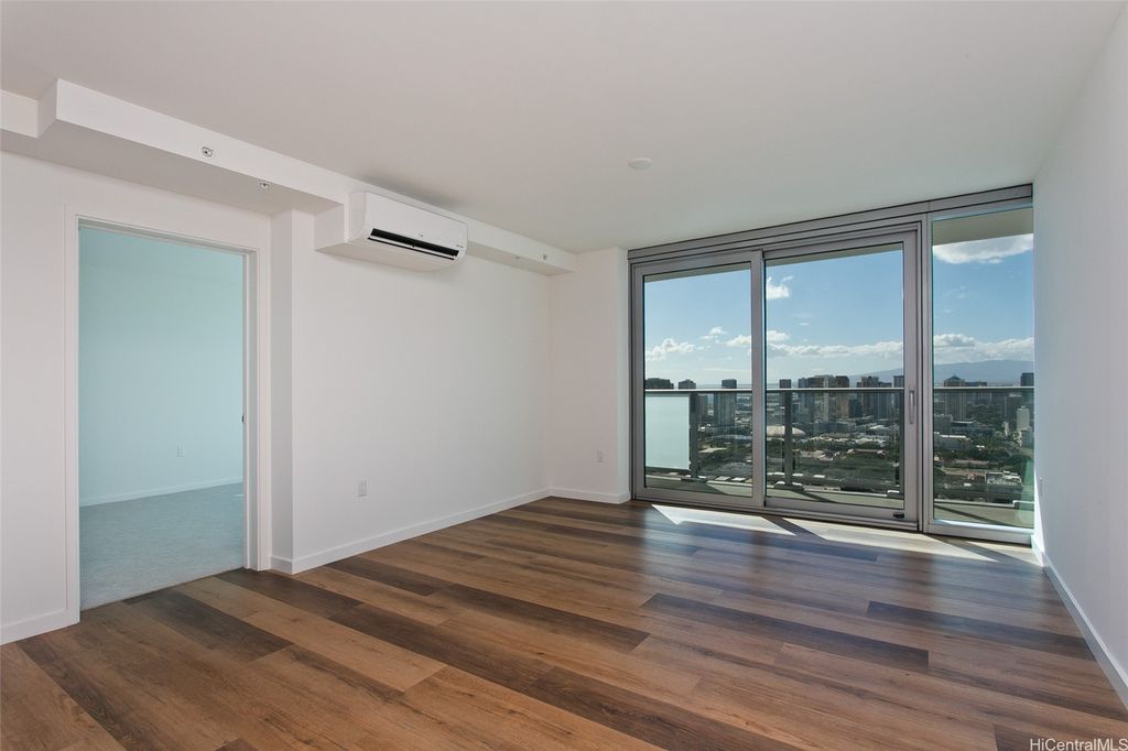 Experience modern urban living in this brand-new, never-lived-in 2 bedroom/2 bath residence with 2 parking stalls at The Park on Keeaumoku. This thoughtfully designed home features floor-to-ceiling windows, luxury vinyl plank flooring in living room, split A/C, washer/dryer, and a private lanai with city views. Residents enjoy resort-style amenities including an infinity pool & spa, BBQ pavilions, fitness center, yoga studio, sauna, theater, and stylish clubrooms. Conveniently located near Ala Moana Shopping Center, Sam's Club, Walmart, and restaurants. Tenant responsible for electricity and must provide renters insurance. Service and emotional support animals must be disclosed with the application. No pets, no smoking.