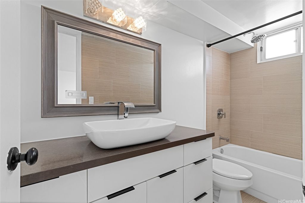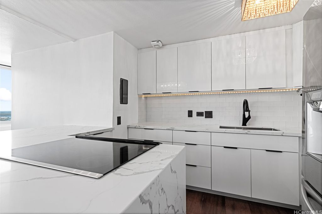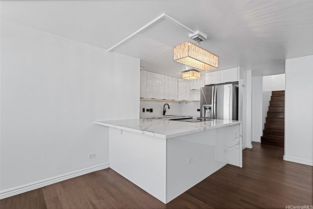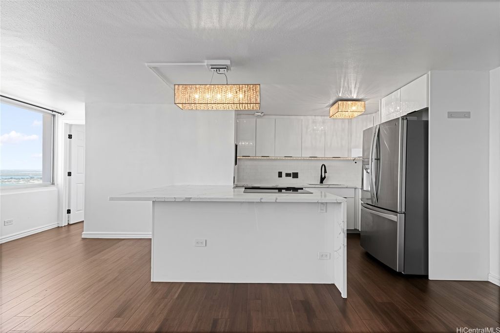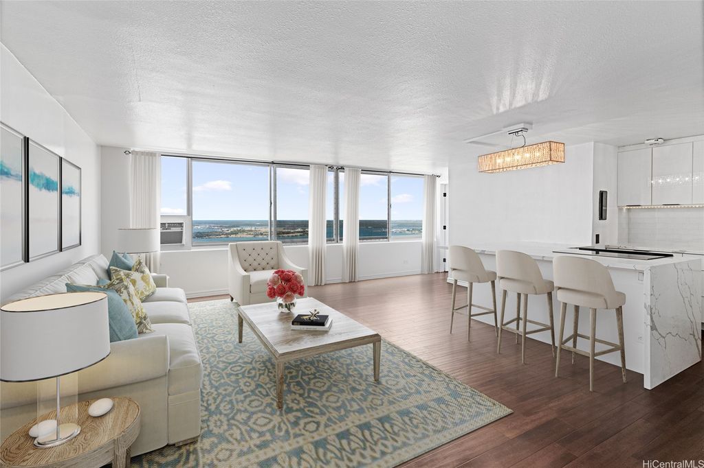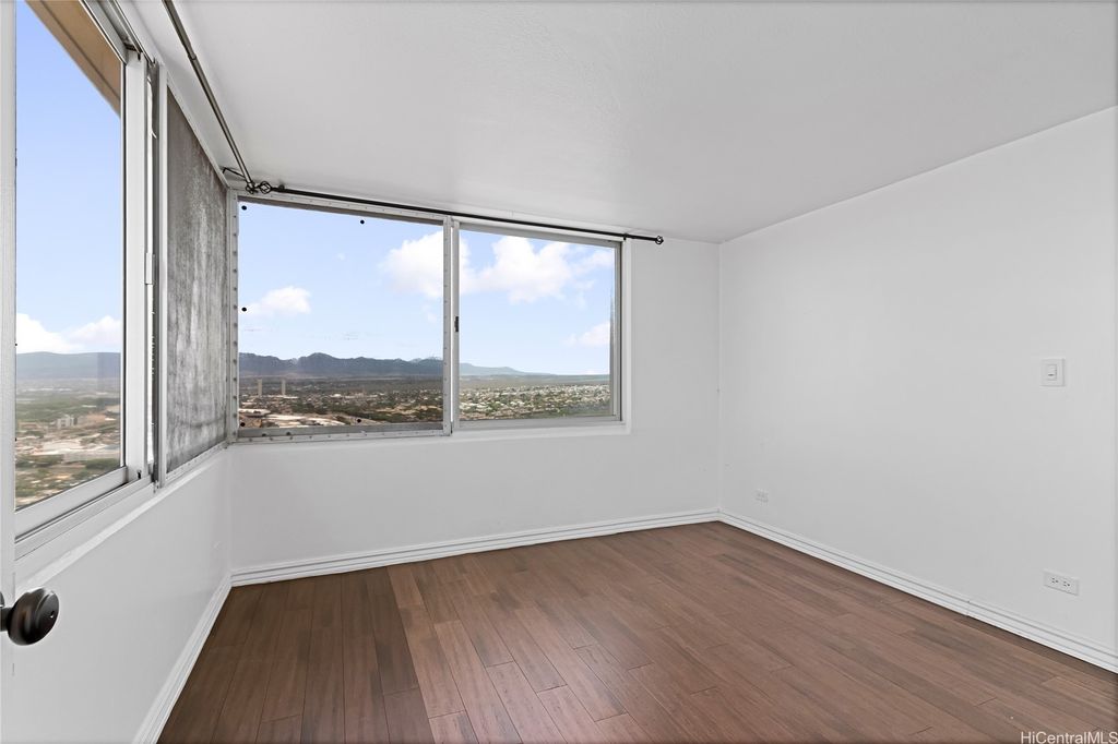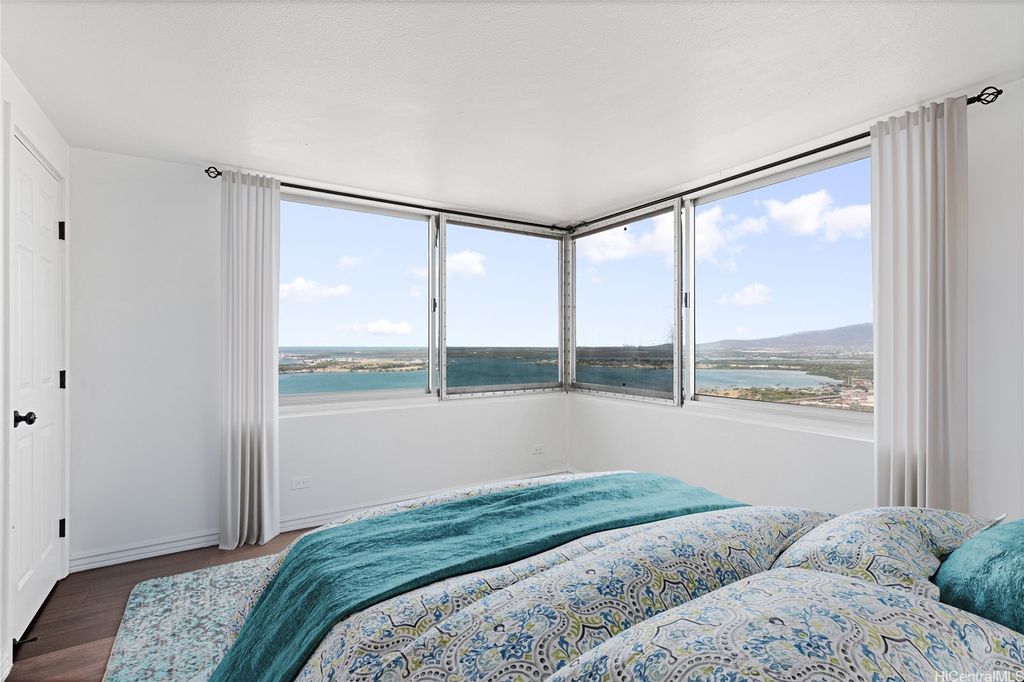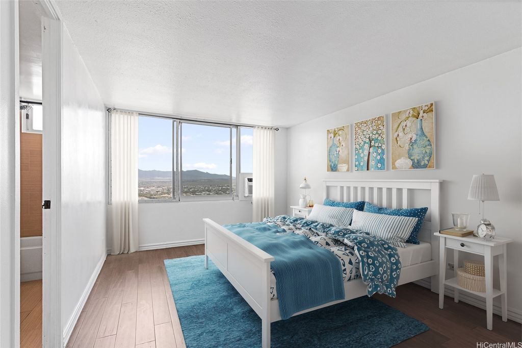 NEW PRICE! Unique 2-story split level penthouse with sweeping views with updated kitchen and bathrooms. Top floor is a loft that opens directly onto the large deck/ lanai creating an inviting extension of your living space and the perfect spot to relax or entertain. Whether you're looking for a new home or an addition to your real estate portfolio, this unit was garnering $3,600/month in rental income. AC in the living room, master bedroom, and loft. It includes a stackable washer/dryer and 2 side-by-side full-sized parking stalls. Pet-friendly building (pls verify) VA-approved, 100% hurricane insured! Pearlridge Square is a well-maintained high-rise building, conveniently located just a short walk from Pearlridge Mall and Pali Momi Hospital. It's a short drive to the airport, Pearl Harbor, freeway access, and numerous shops and eateries.Building amenities include secured entry and parking, a pool, sauna, and fitness center. Disclosure: Owner of the unit is a license Real Estate broker and owner of Cadmus Properties, the management agent for the AOAO. Virtually staged.