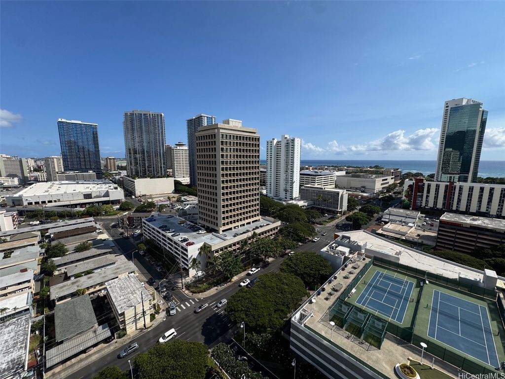 Welcome to Moana Pacific - Luxury 2-Bedroom Condo with Den, Storage, and 2 Parking Stalls. Experience modern urban living in this beautifully appointed 2-bedroom, 2-bathroom residence at the highly desirable Moana Pacific. This unit includes two parking stalls plus additional storage #330, offering both comfort and convenience. The unit is elegantly upgraded with luxury engineered hardwood flooring throughout and features a versatile den, ideal for a home office, study, or creative space. Large windows invite in natural light, enhancing the spacious open-concept design. Moana Pacific provides an exceptional lifestyle with a host of amenities, including BBQ grills, tennis courts, a fully equipped fitness center, golf putting green, and a dedicated kids' playground. Perfectly located in the heart of Honolulu, this residence is just minutes from Ala Moana Shopping Center, Ala Moana Beach Park, renowned dining, entertainment, and more. This property is being sold AS IS with no concessions, credits, or repairs offered.