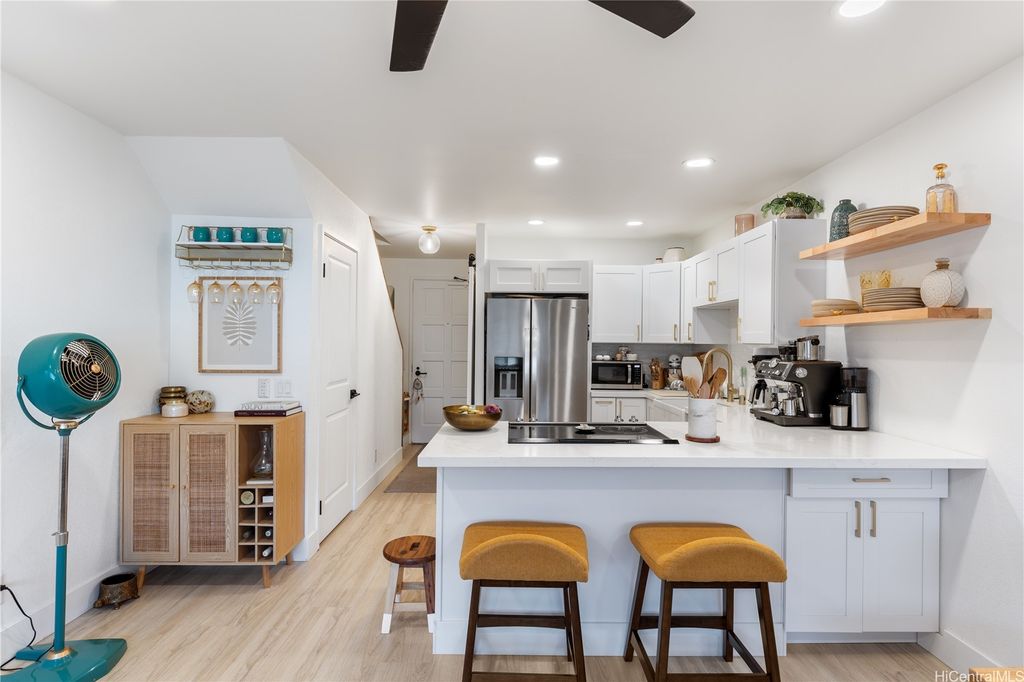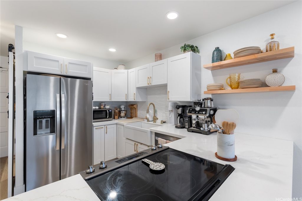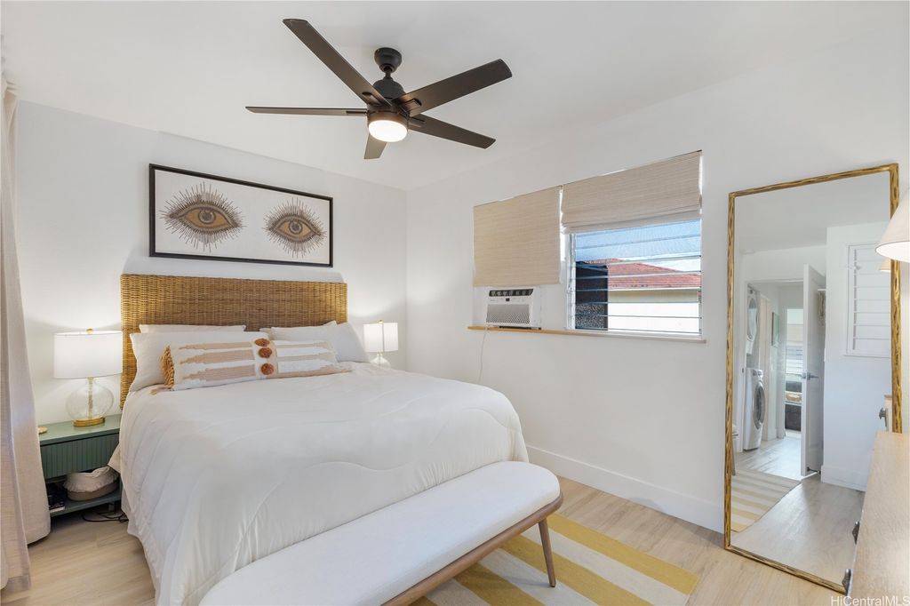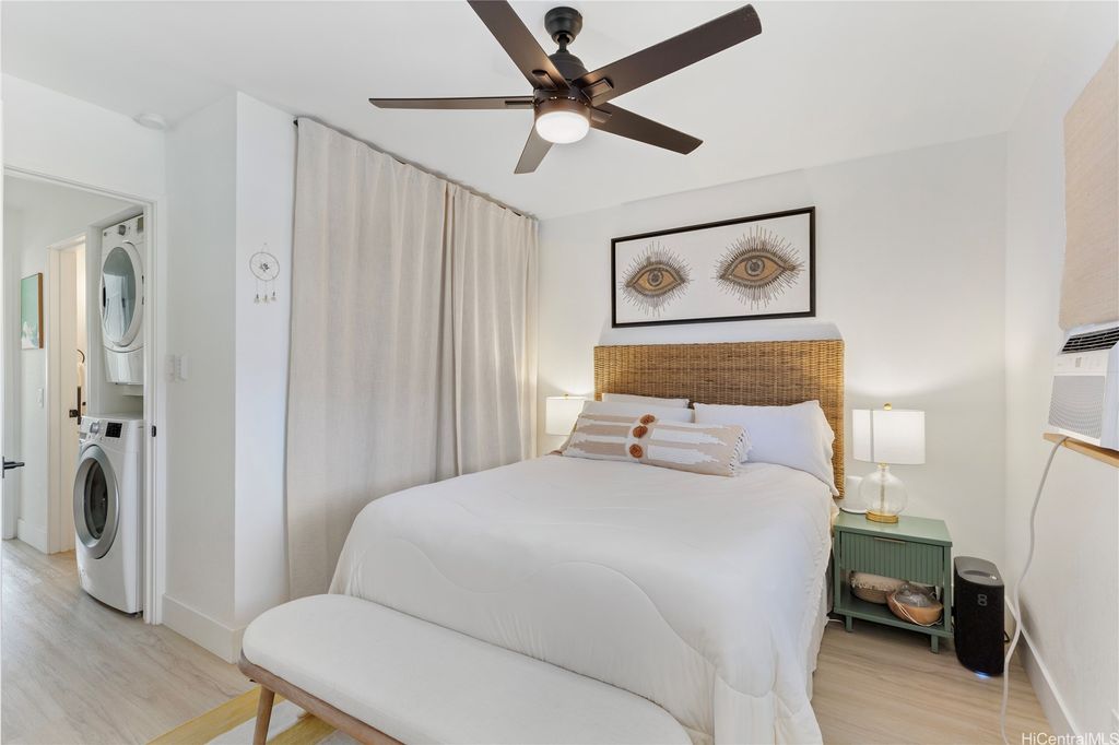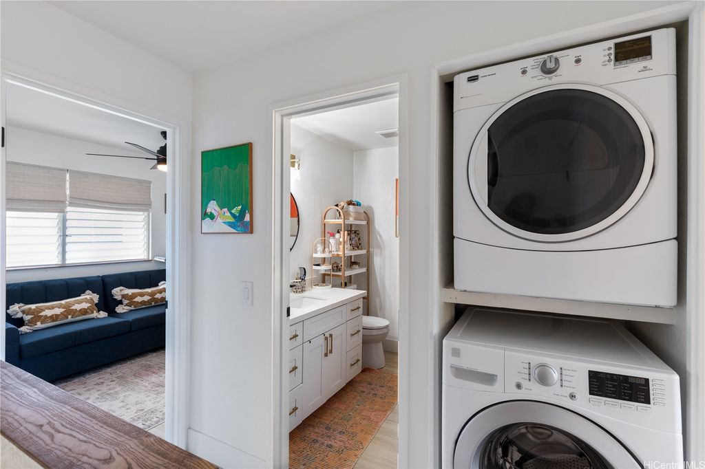 Welcome to this beautifully remodeled 2 bedroom, 1.5 baths Kailua condo. The unit is two stories with both bedrooms and a full bath on the second floor. The full kitchen has been upgraded with new appliances, new cabinets, backsplash, and granite countertops. This home also offers a window AC unit in the living room and in the larger bedroom, as well as an in-unit stacked washer and dryer on the second floor. It even has an asssigned covered parking space plus a storage unit too! The building offers an elevator, lots of guest parking, community BBQ area, and a playground. Location is amazing - you are minutes from Kailua Beach, restaurants, post office, shopping, Whole Foods, and more! Plus there's even a private gate just for Koolau Vista residents that gives you quick access to Target. The Association only allows registered service animals. No smoking. $25 application fee and rental insurance is required. Please call or text Joy Tamangided with Windward Properties at (808) 895-7552 or email at joy@windwardproperties.com.