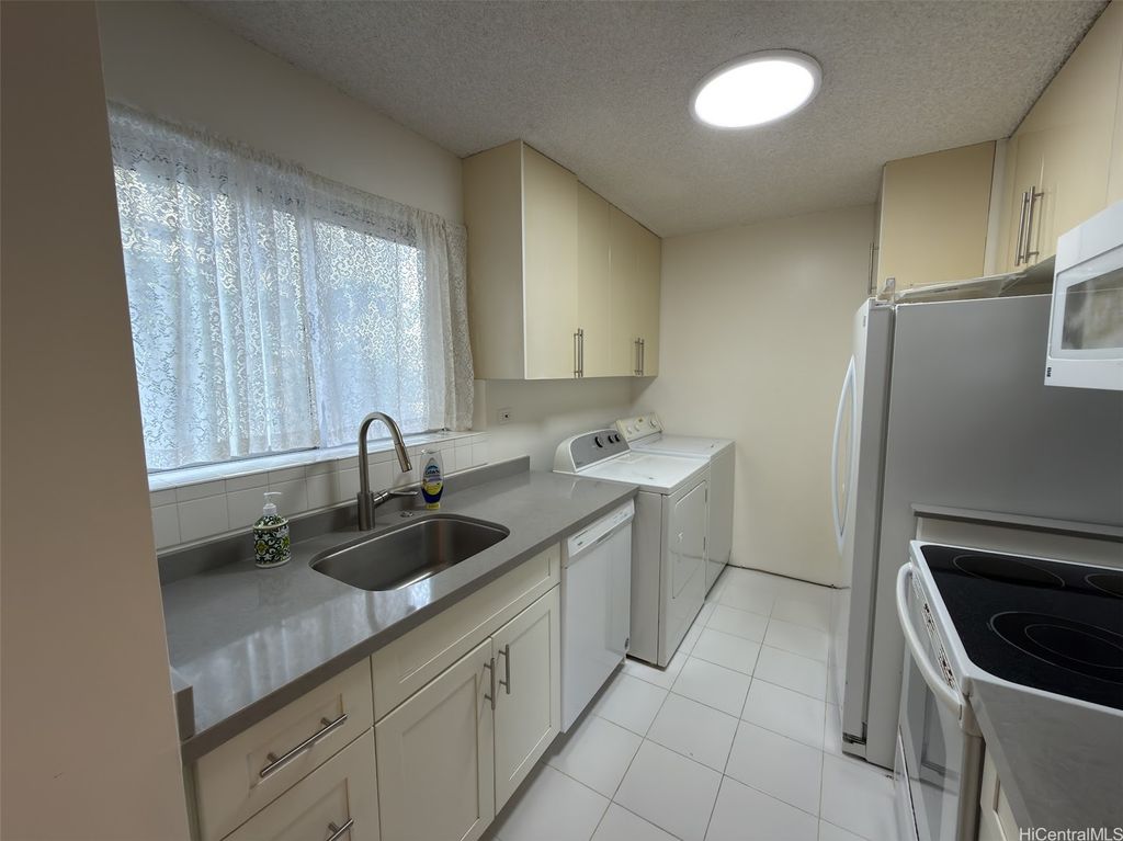 Conveniently located with easy access to the freeway, this 2-bedroom, 2-bath unit offers comfort and convenience in a secure building with only two units per floor. Situated on a low floor, the unit includes a private lanai for relaxing or entertaining. Features: Spacious living area with new vinyl plank flooring Split AC for year-round comfort In-unit washer, dryer, refrigerator, and oven/range One assigned open parking stall (#2) Amenities: Swimming pool Barbecue area Highlights: Clean and move-in ready Prefer long-term lease