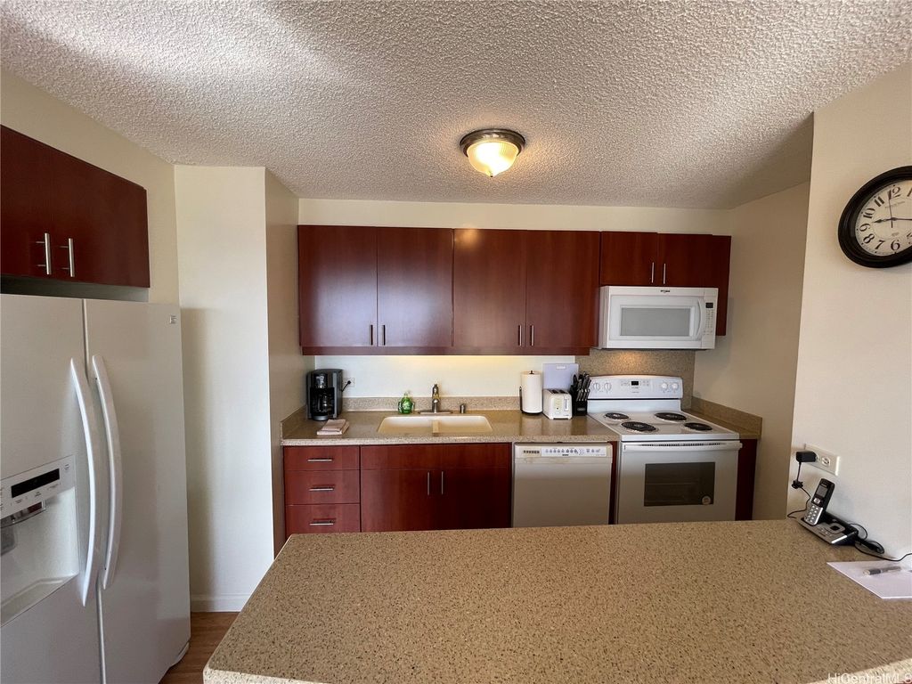 LEGAL 30-DAY MINIMUM RENTAL/ HIGH FLOOR UNIT/ OPEN LANAI; Spacious & Clean. Remodeled (2011) great corner unit, mountain & canal view. Vinyl flooring, kitchen, & bath cabinets. Great location for easy access to restaurants, convenience stores, Ala Moana shops, beaches, surf breaks, and on the Bus and trolley line. Seasoned building managed and Board of Directors, 24-hour security, and all the amenities you need! Unit is fully furnished and ready to occupy or lease. The Seller has purchased 96.893% of the Leased Fee interest. The AOAO has the right & obligation to purchase the remaining 3.01% leased fee interest no later than the end of the lease expiration of 12/31/2039. Quarterly lease rent @ $41.90 paid with Maintenance fee. Discovery Bay is a wonderful choice if you are looking for a great location close to the Beach, Ala Moana Beach Park, and Ala Moana Shopping Center. Amenities include Heated swimming pool, BBQ area, (2) exercise rooms, sauna, recreation/sunning area & whirlpool. Building has security guard, secured lobby & video. Commercial units on two bottom floors along Ala moana.