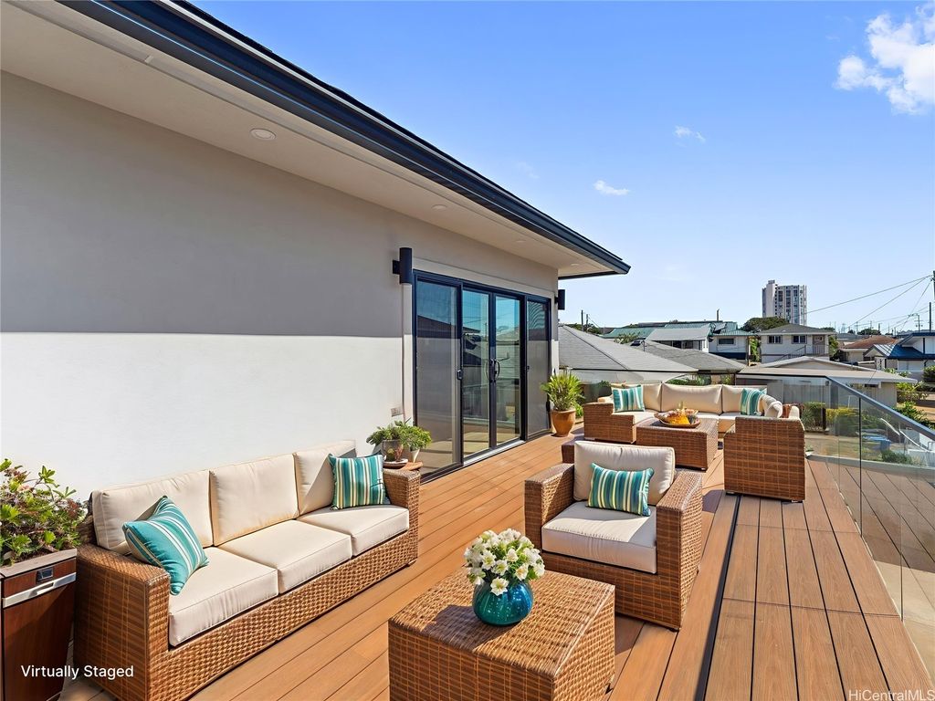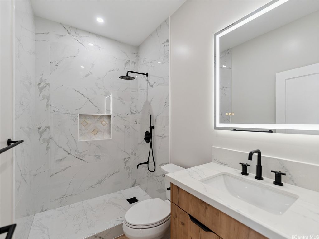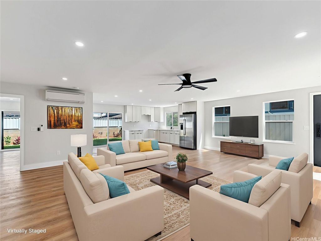 Motivate seller! The beautiful brand-new, detached CPR modern home:5 spacious bedrooms and 4 full bathrooms, landscape yard is perfect for multi-generation, rental income(3/2 upstairs, 2/2 downstairs), or buyers who want a single home without condo fee. This home features an open concept living room, a modern kitchen with beautiful cabinetry, stylish backsplash, and stainless-steel appliances. The primary bedroom includes a walk-in closet, and a luxurious bathroom with soaking tub, glass door shower, and double sink vanity with LED vanity mirrors. Each upstairs bedroom has its own private lanai and the most spacious lanai is connected to the living room; this creates a perfect setting for family gathering or relaxation area after a long day.7 split AC units & multiple ceiling fans, the home can remain comfortable all year long. Two garages for thee cars includes a EV-power charging station, and Smart cable box for all internet. This home located close to the public schools, private schools, University of Hawaii at Manoa, Chaminade University, Kahala Mall, and a variety of restaurants. Easy access to freeway. The home truly provides comfort & convenience