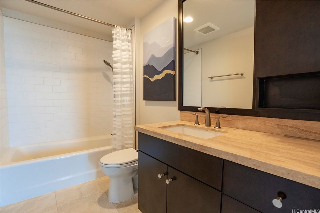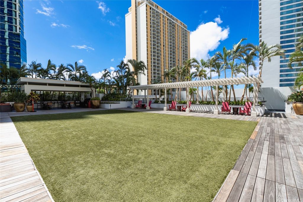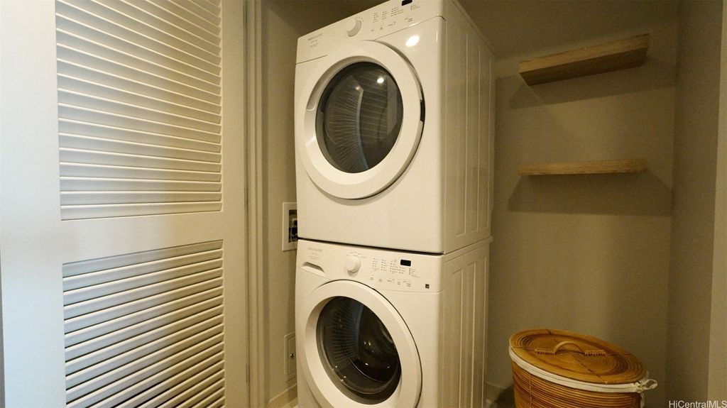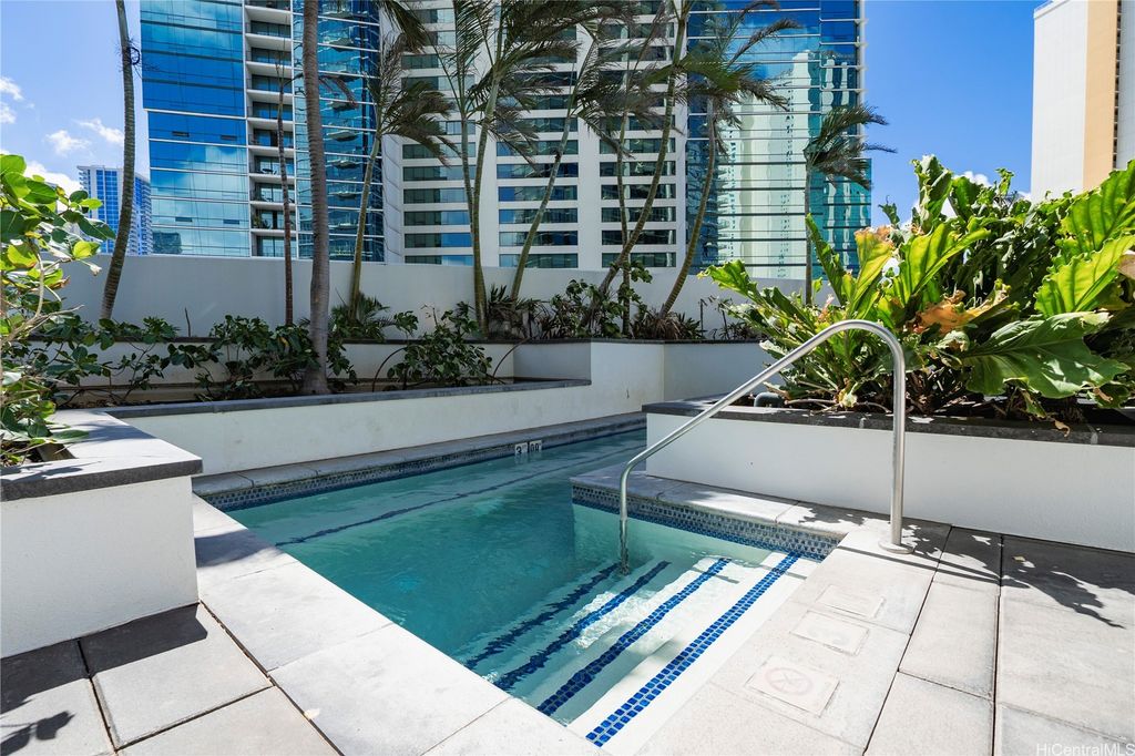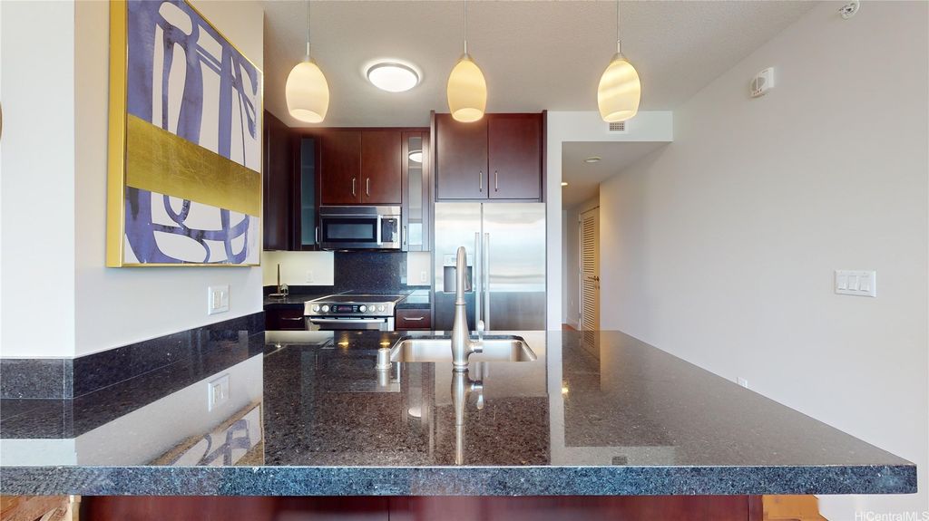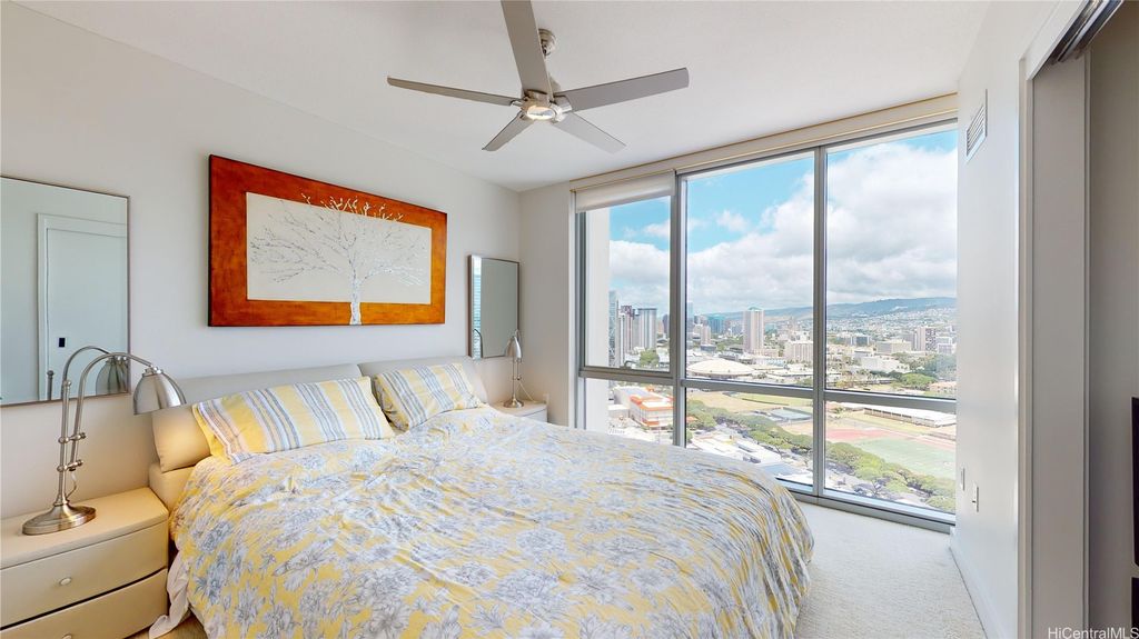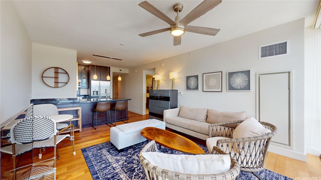 Welcome home to beautiful Waihonua! This fully furnished (except for a bed) 1 bdm, 1 bath contemporary condo offers city and mountain views in one of Honolulu's most desirable locations. The unit features a modern kitchen with custom cabinetry, granite countertops, and stainless steel appliances. Hardwood flooring runs throughout the entry, kitchen, and living room, while the bedroom is carpeted. Additional features include a central air conditioning and a full-size stacked washer and dryer. One parking stall and a private storage cabinet are included. Enjoy resort-style amenities such as an infinity-edge pool, whirlpool spa, poolside cabanas, BBQ area, private movie theater, and a state-of-the-art fitness center. Fob access to the building entry, elevators and parking. Conveniently located near Ala Moana Shopping Center, Ala Moana Beach Park, and a variety of restaurants and entertainment options, this home provides the perfect balance of luxury and lifestyle. Water, sewer, basic cable, and internet are included in the rent. No pets and no smoking allowed. Minimum 1-year lease, good credit, solid rental references, and renter's insurance required. $30 application fee per adult.
