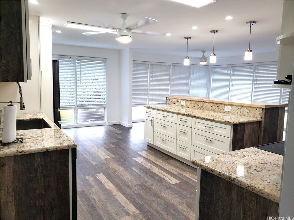 This large, 4 bedroom 2.5 bath single-level home in Salt Lake has been beautifully remodeled and features central air throughout. The open-concept layout includes a spacious kitchen and dining area, a generous living room, and an indoor laundry room with a convenient half bath. The kitchen boasts granite countertops, newer cabinetry and appliances. The primary bedroom includes an en-suite bathroom with a walk-in shower. Situated on a corner lot, the home is fenced and offers a two-car garage with additional tandem parking in the driveway. Flooring consists of wooden floors and ceramic tile in the bathrooms. Ideally located near Salt Lake Shopping Center, Tripler Hospital, Fort Shafter, and with easy access to the freeway in both directions. This home offers both comfort and convenience. Tenants are responsible for all utilities, including water, sewer, electricity, and cable/internet, while yard service is included in the rent. Renter's insurance is required and must be in place before moving in. This is a must-see property! Call Lurline for a showing - 808-741-1180 - or email to Lur@pro808.com. Available for move in on November 1st.