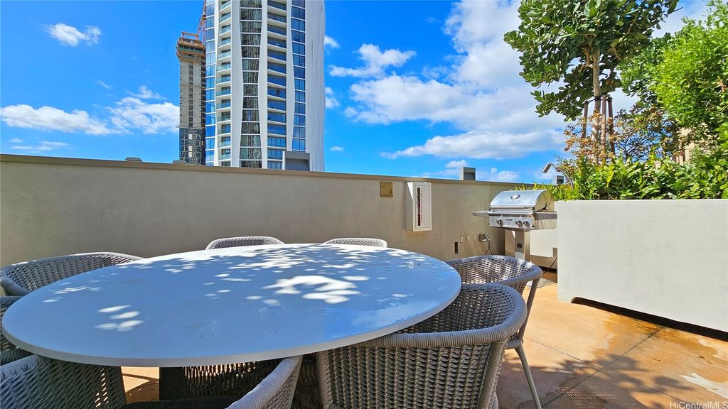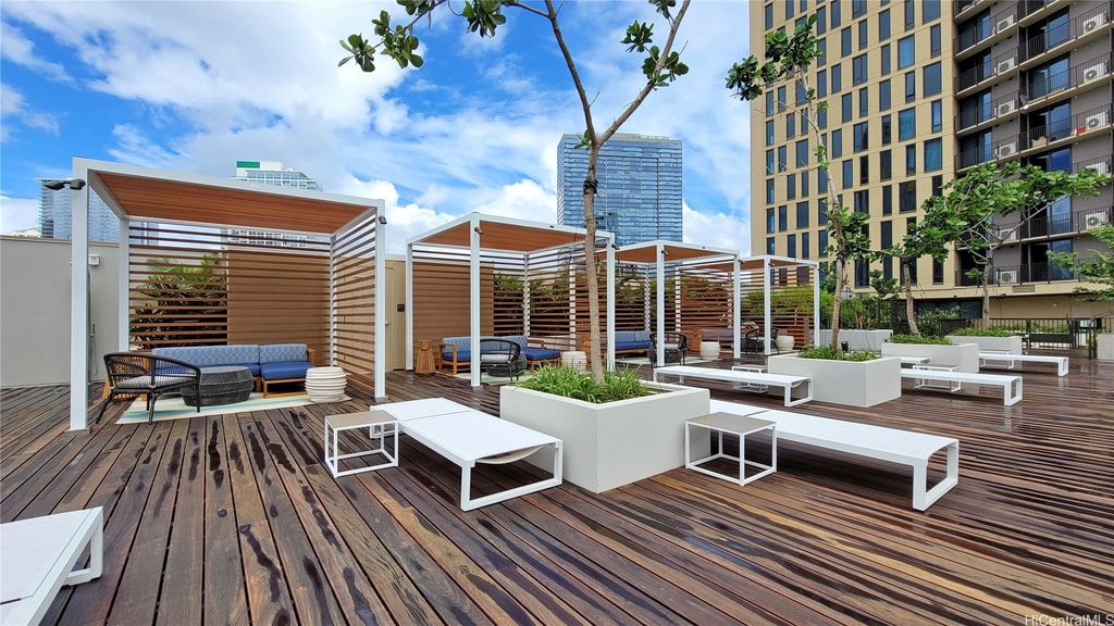 Enjoy modern luxury & living of the Ward village community in Kokako. Tastefully furnished studio with 379 sqft of living space offering Murphy bed, split AC, laminate flooring and 1 assigned parking stall. Unit is included refrigerator, induction stovetop, oven, dishwasher, microwave range hood and washer/dryer. Amenities include heated pool, hot tub, BBQ cabanas, recreation room, fitness center, yoga studio, indoor-outdoor private lounges and sky deck. Secured property has concierge desk and on-site management office Utilities include basic internet, water , sewer and refuse. Tenant pays electric & AC, usage and cable. APT has such good amenities private party rooms, spacious rooftop lanai with amazing views of the sunset and fireworks, and a sky Lounge on 42nd FL. Convenient location near shops, more restaurants & pastry shops, Whole Foods, South Shore Market, Ward Center., Ala Moana Center., etc. The APT locates very near to Ala Moana Beach Park. No smoking, No pets, Rental Insurance required