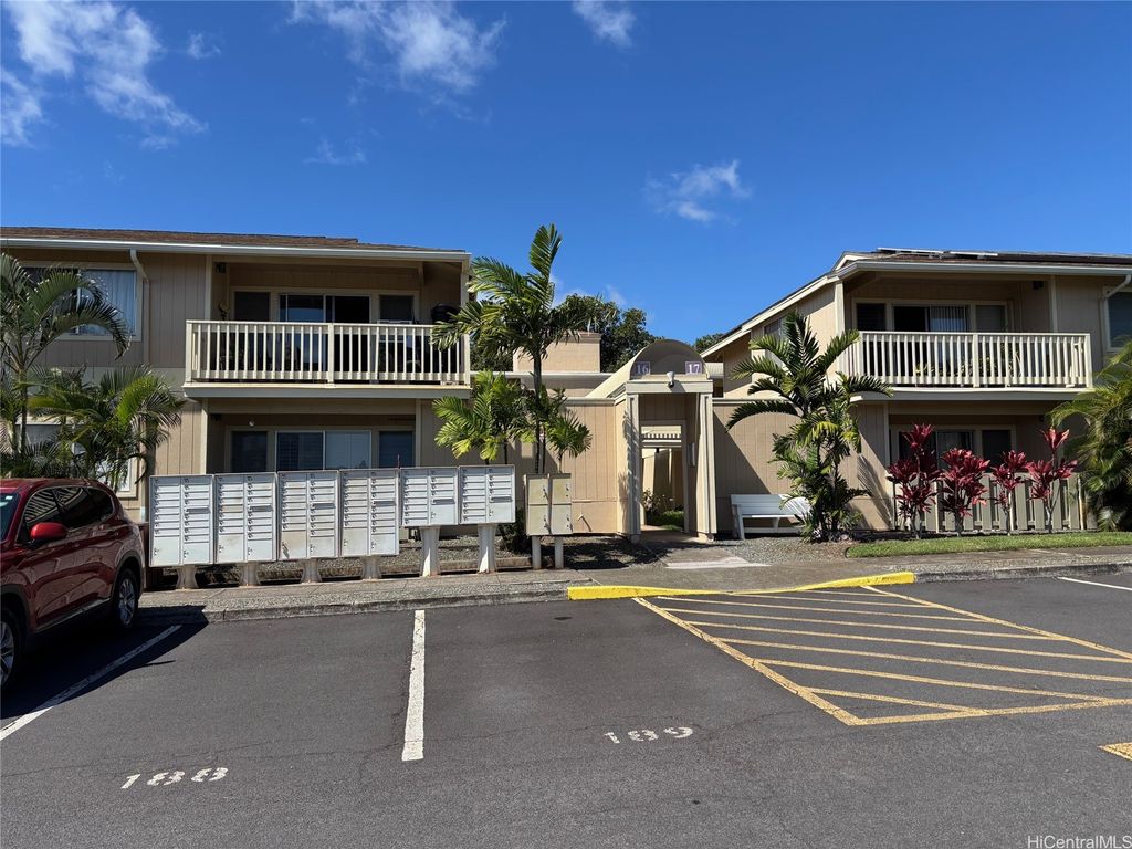Olaloa is a gated "55+ Community" This bldg has an elevator and a community laundry area besides the washer/dryer in the apt. Corner end unit on the 2nd floor. Tank Less water heater, apt just painted and new carpeting installed. Living room has a split AC unit. This is the floor plan with a dining area also additional closets. Storage Locker is right outside the door. 2 great side by side pkg stalls at the bldg entrance