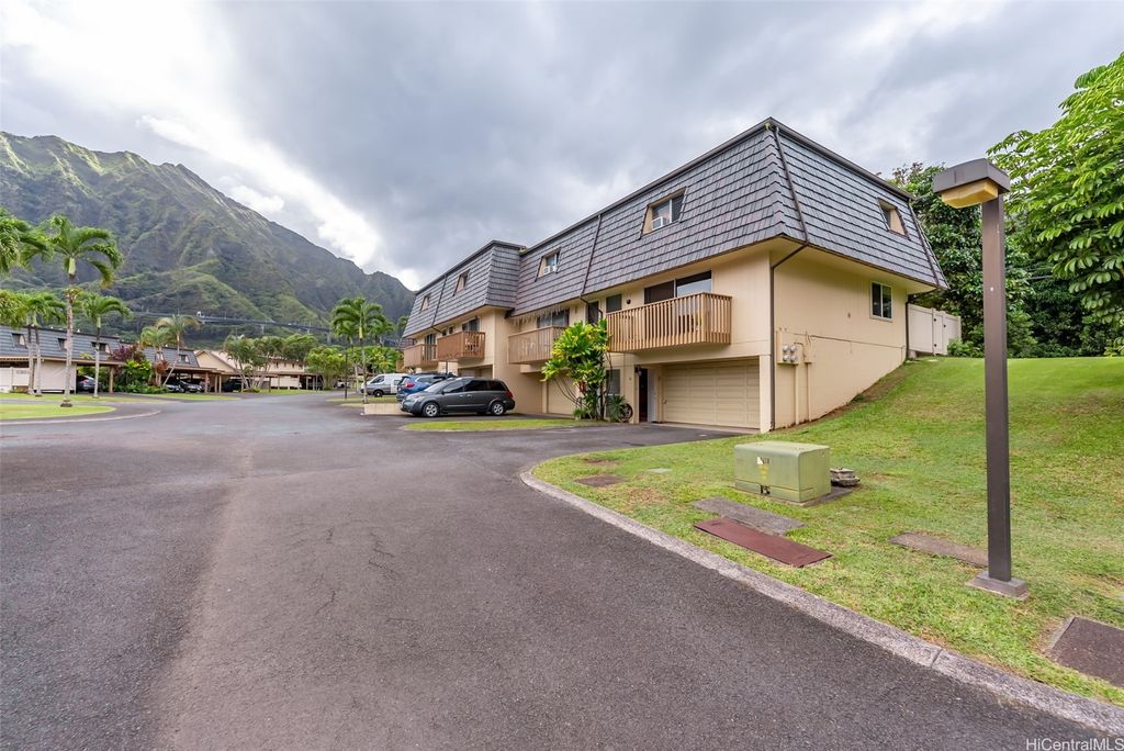 Welcome home to this beautifully maintained 3-bedroom, 2.5-bath townhouse in a peaceful Kaneohe community. Enjoy stunning views of the Ko'olau Mountains and the relaxed Windward lifestyle, surrounded by lush greenery and friendly neighborhood chickens that add a touch of local charm. Inside, you'll find a spacious layout featuring hardwood and laminate flooring throughout the living areas, tiled bathroom floors, and freshly painted walls. The spacious two-car garage offers ample storage, and the private courtyard is perfect for relaxing or entertaining. Residents enjoy access to a community center and a convenient location just minutes from dining, including Haleiwa Joe's, as well as shopping, schools, and freeway access. Easy routes via H-3 and Likelike offer a quick commute to Pearl Harbor, Hickam, and Kaneohe Marine Corps Base Hawaii. Don't miss this opportunity "” schedule your private showing today! (One or more photos are enhanced)