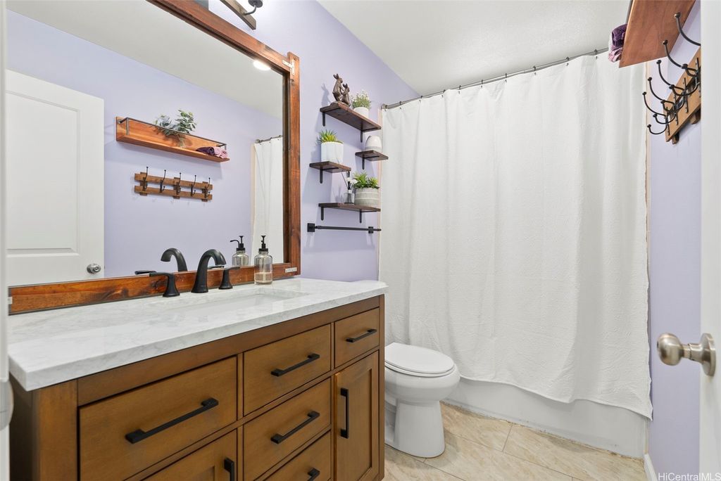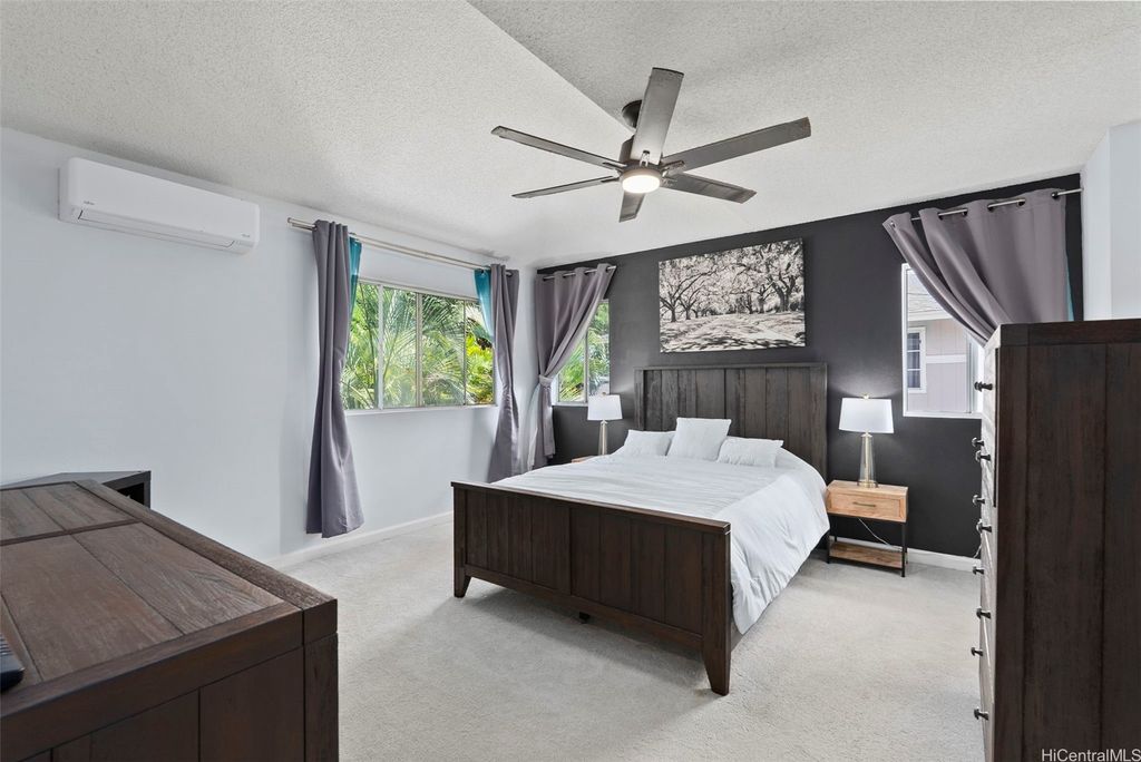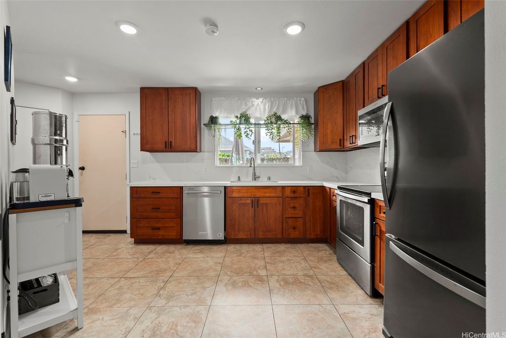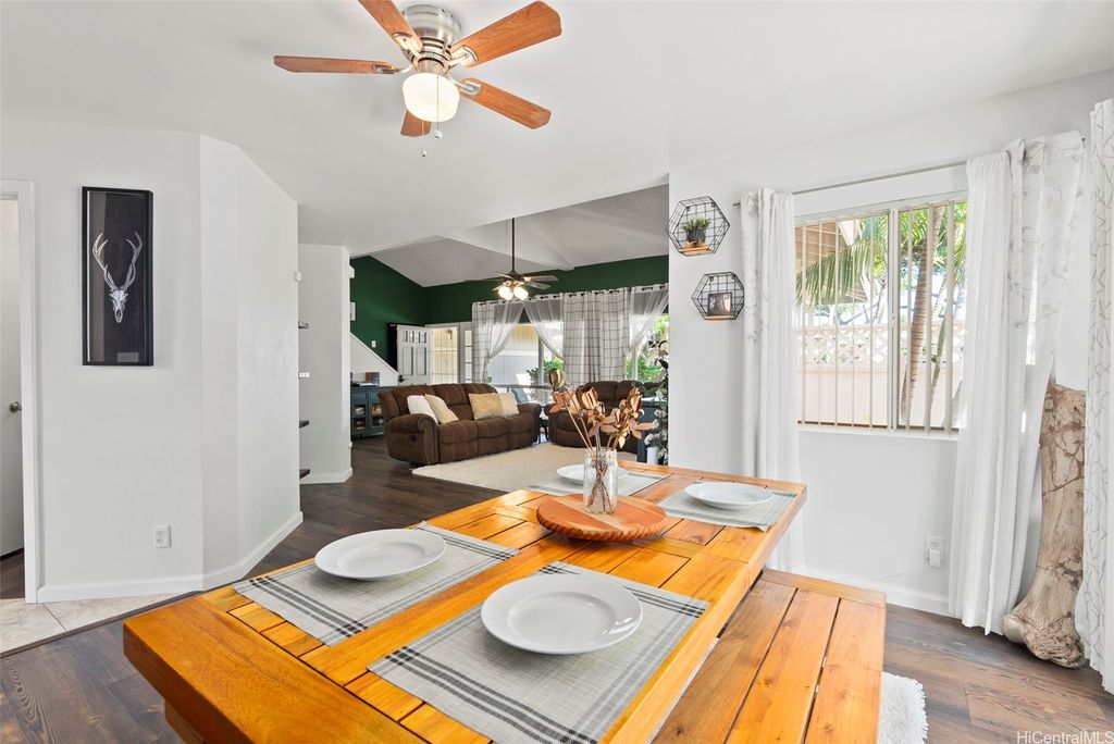 Experience modern island living in this beautifully updated home in the peaceful and sought-after West Loch Fairways community. Step inside to find a large living room with vaulted ceilings and luxury vinyl plank flooring. The dining room conveniently opens to a side yard with covered lanai. The newly remodeled kitchen (2023) features quartz countertops and stainless steel appliances. Enjoy year-round comfort with split A/C units (2021), and ceiling fans in every bedroom (2020). The home also features a new roof, 2-car garage door (2023), a PV system (2017) for energy efficiency, and a large level front yard. Conveniently located near the H-1 freeway, this move-in-ready home perfectly blends comfort, style, and the relaxed island lifestyle. (VA assumable loan available)