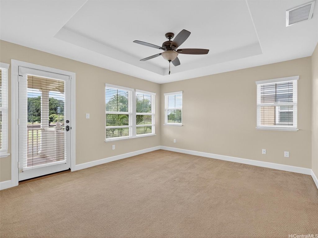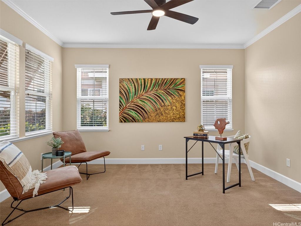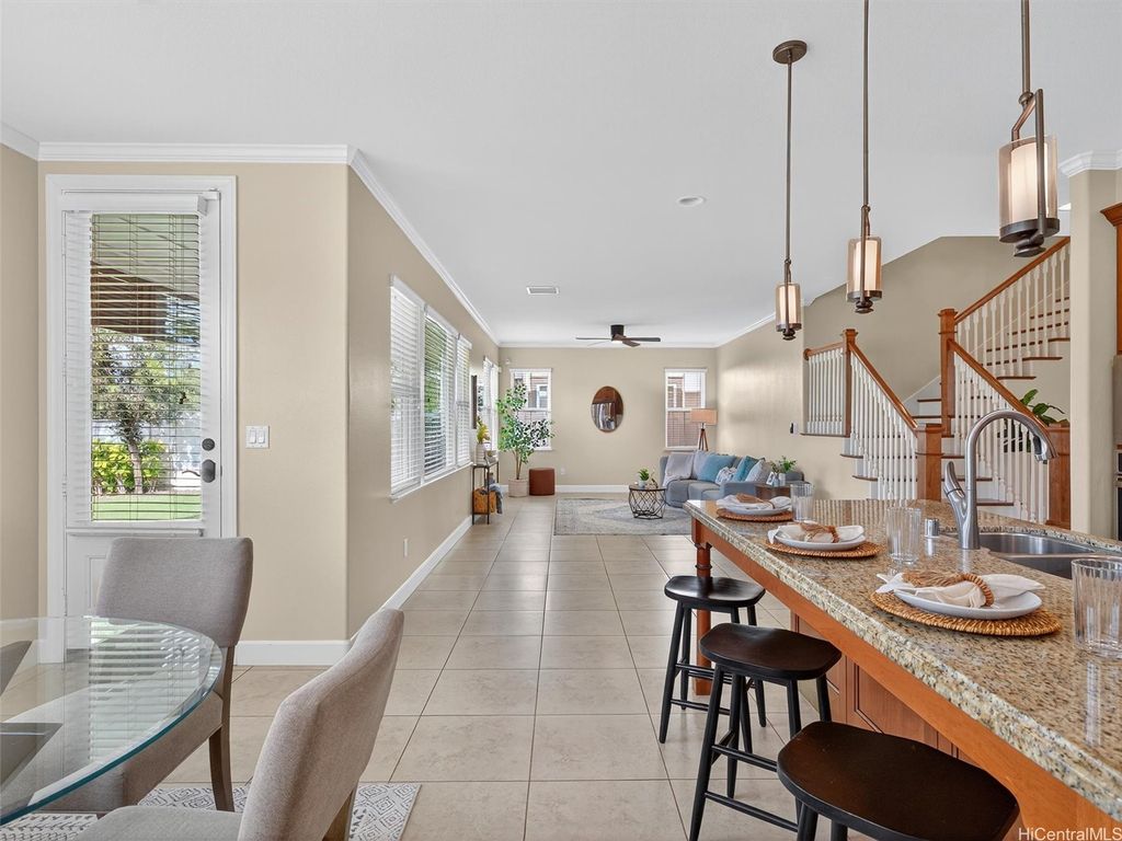 Discover relaxed island living with an elegant twist at this beautiful Ka Makana at Hoakalei residence"”where your backyard opens to the Barber's Point golf course. The open layout fills the home with natural light and flows effortlessly from the living and dining areas to the backyard, creating a true indoor-outdoor experience. It's the perfect setting to entertain, unwind, and embrace the Hawaiian lifestyle with family and friends. On the lower level, a dedicated office or study provides a quiet retreat for work or creative projects, along with a full bedroom and bath. Upstairs, the primary suite features dual walk-in closets and a spa-inspired bath, creating a serene escape for relaxation. Two additional bedrooms and a full bath complete the upper level, along with a lanai overlooking the golf course"”your front-row seat to golden sunsets. This home is equipped with owned PV panels and solar water heating, helping to reduce monthly energy costs.Resort-style living awaits in Hoakalei, with a $281/month HOA that covers internet, cable, access to the community pool and tennis courts, plus the nearby Wai Kai surf and lagoon destination featuring dining, events, and vibrant community.