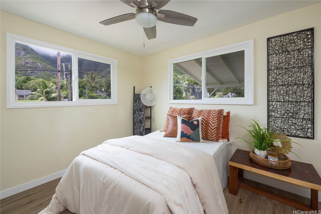 Your Coastal Escape Awaits! Discover the perfect blend of island tranquility and modern luxury in this beautifully renovated home nestled along the breathtaking coastline of Ka'a'awa on Oahu's stunning Windward side. Wake up to the serene sounds of the ocean, admire views of the iconic Crouching Lion, and enjoy easy access to nearby beaches and hiking trails. The ultimate North Shore experience begins here. Step inside to a spacious, light-filled open layout interior with luxury vinyl plank flooring, fresh interior and exterior paint. The heart of the home - a custom kitchen - features Acacia wood countertops, new appliances, and finishes that elevate everyday living. Additional highlights include new bathroom with designer finishes; double-pane, tinted vinyl windows & glass doors for comfort and privacy; New roof recently installed, ceiling fans, lighting, and closet systems. This turnkey home offers a seamless indoor-outdoor living with coastal breezes and mountain air. Whether you're looking for a full-time residence, a weekend getaway, or an investment in one of Oahu's most scenic coastal communities, this home delivers unmatched charm, comfort, and convenience.