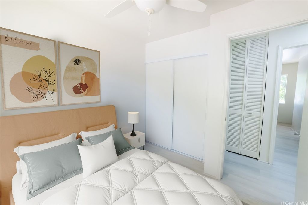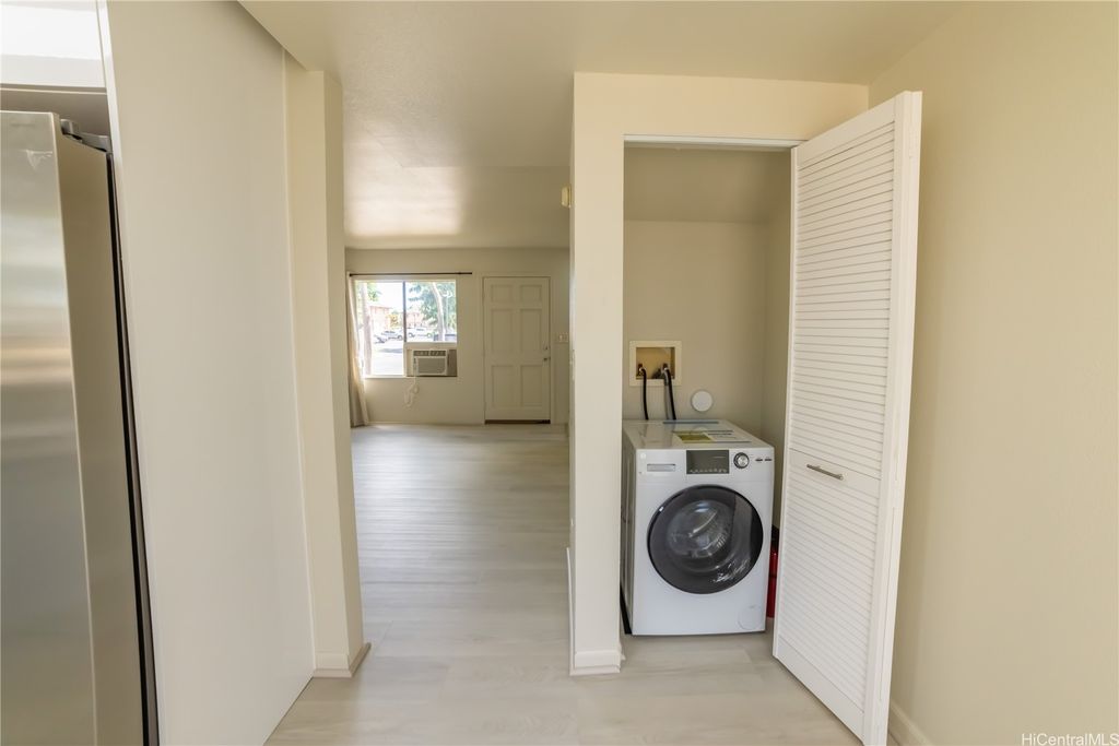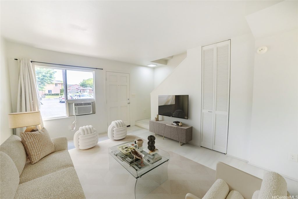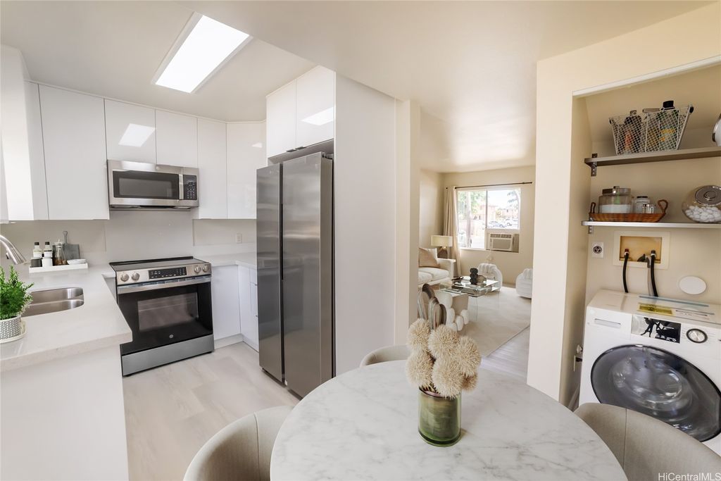 You're going to love this charming, split level, two-bedroom dwelling located in Kulalani Village, neighboring all of your must-have conveniences of shopping, dining, schools, parks, community recreation centers + more! Gorgeous kitchen upgrades satisfy your contemporary appeal! Complete with all-new stainless steel kitchen appliances, quartz counters and sleek, glossy white, full-height cabinets that maximize storage. Laundry closet is equipped with a new space-saving, ventless, high-efficiency, all-in-one washer/dryer combo. Modern luxury vinyl flooring throughout, with ceramic tile in the bathroom. Comfy Primary Bedroom includes dual closets. Additional bedroom is ideal for study, family or guests. Disclosures: One or more photos have been enhanced and virtually staged. Property sold in "As Is" Condition. Don't miss this exceptional home, schedule a private tour today!