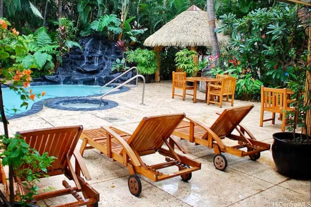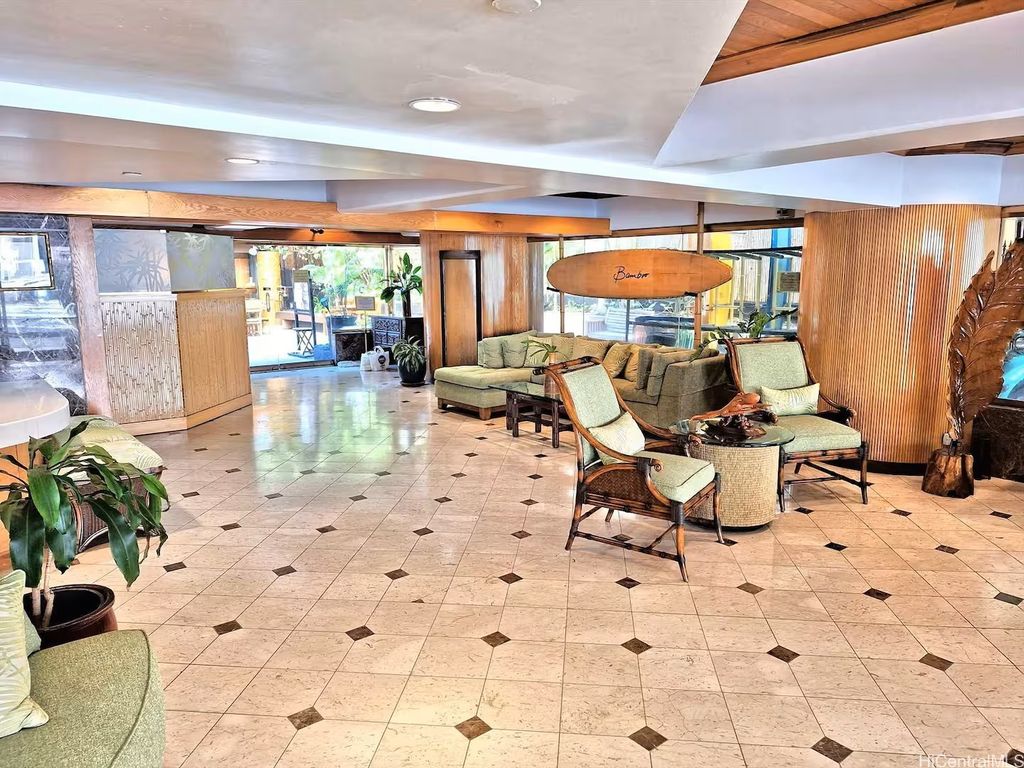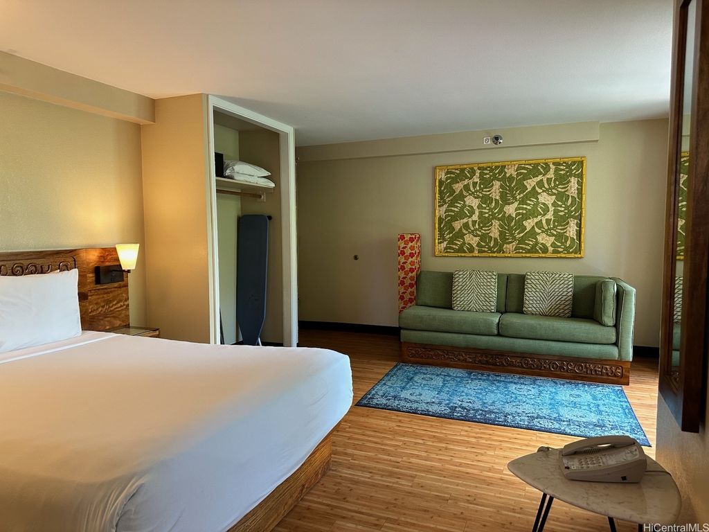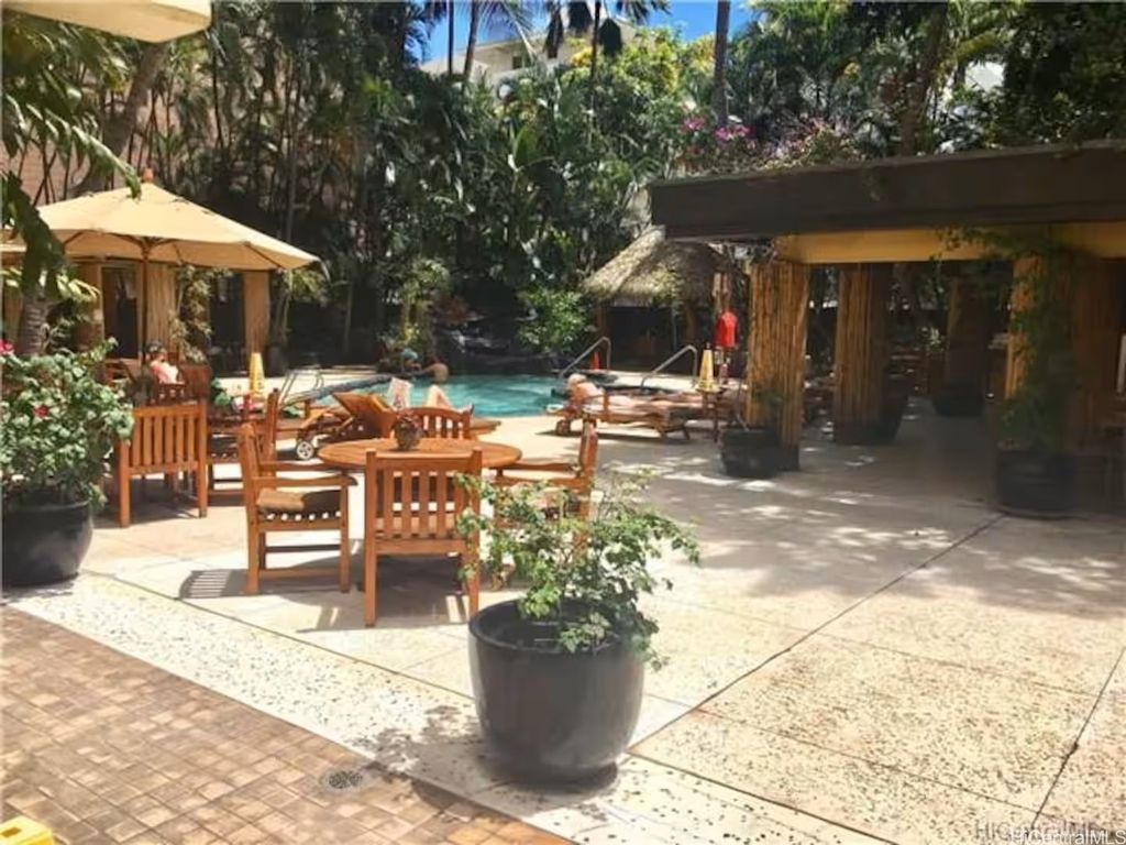 RESORT HOTEL ZONED condo approved for daily rentals. Rarely available larger studio with two lanais/patios overlooking the beautiful Resort Amenities of Bamboo. Total immersion of what staying in a Waikiki Resort feels like. Enjoy, while only being a short walk to world famous Waikiki Beach and all the night life!