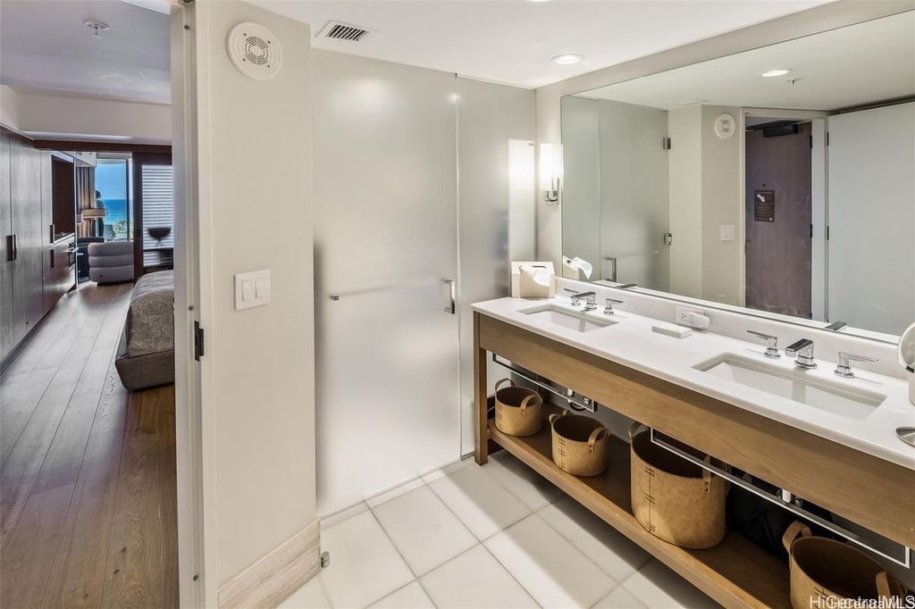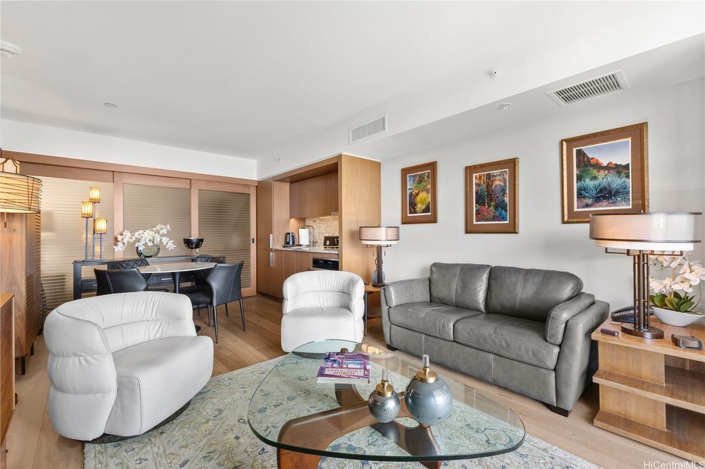 Enjoy luxury living at The Ritz-Carlton Residences, Waikiki Beach Tower 2! This stunning studio residence is in excellent condition and features a rare floor plan that lives like a one-bedroom. The unit comes fully furnished, including high-end furniture, designer lighting, custom artwork, linens, and kitchenware. The spacious bedroom area adjoins an ultra-luxurious bathroom with a deep soaking tub, separate walk-in shower, and double vanity. Top-notch amenities include two infinity-edge pools, concierge service, valet parking, fitness center, and a full-service spa. Upscale appliances and granite countertops are included with the purchase. Other fee represents the monthly reserve fund.