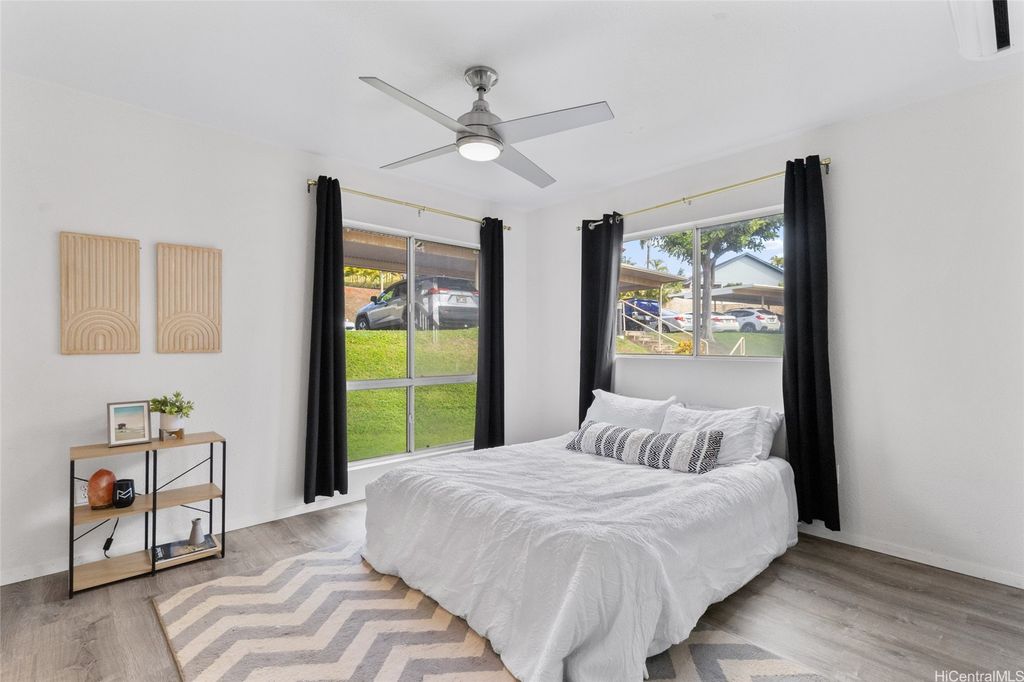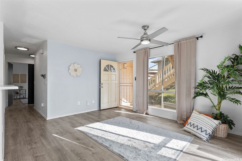The ultimate ground level corner end unit in Westview at Makakilo Heights. This modern corner unit offers 2 spacious bedrooms and 2 bathrooms within 796 square feet of thoughtfully designed living space. Positioned on the ground floor, the home features vinyl flooring throughout, creating a sleek and easy-to-maintain living environment. Enjoy the convenience of a washer and dryer in the unit, along with split air conditioning to keep you comfortable year-round. Step outside to your private yard, perfect for relaxation or outdoor entertaining. With two assigned parking spaces and additional guest parking, your parking needs are effortlessly met. As a special incentive, the seller is offering a credit to the buyer, adding extra value to this charming home. Whether you're hosting gatherings or enjoying a quiet evening, this Makakilo gem provides the perfect blend of comfort and functionality.