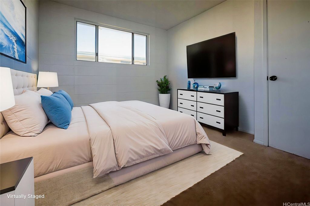 Why rent when you can own! Don't miss this incredible opportunity to own your piece of paradise in the heart of Waipahu. Lowest priced unit in Kunia Palms. This bright and breezy 2-bedroom, 1-bath home features an open layout, is freshly painted, and has new carpet. Enjoy the convenience of one assigned parking stall and proximity to the rail station, shopping centers, restaurants, schools, and freeway access .Perfect for first-time buyers or investors looking for an affordable property with great potential! Vacant and easy to show!