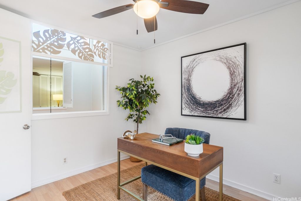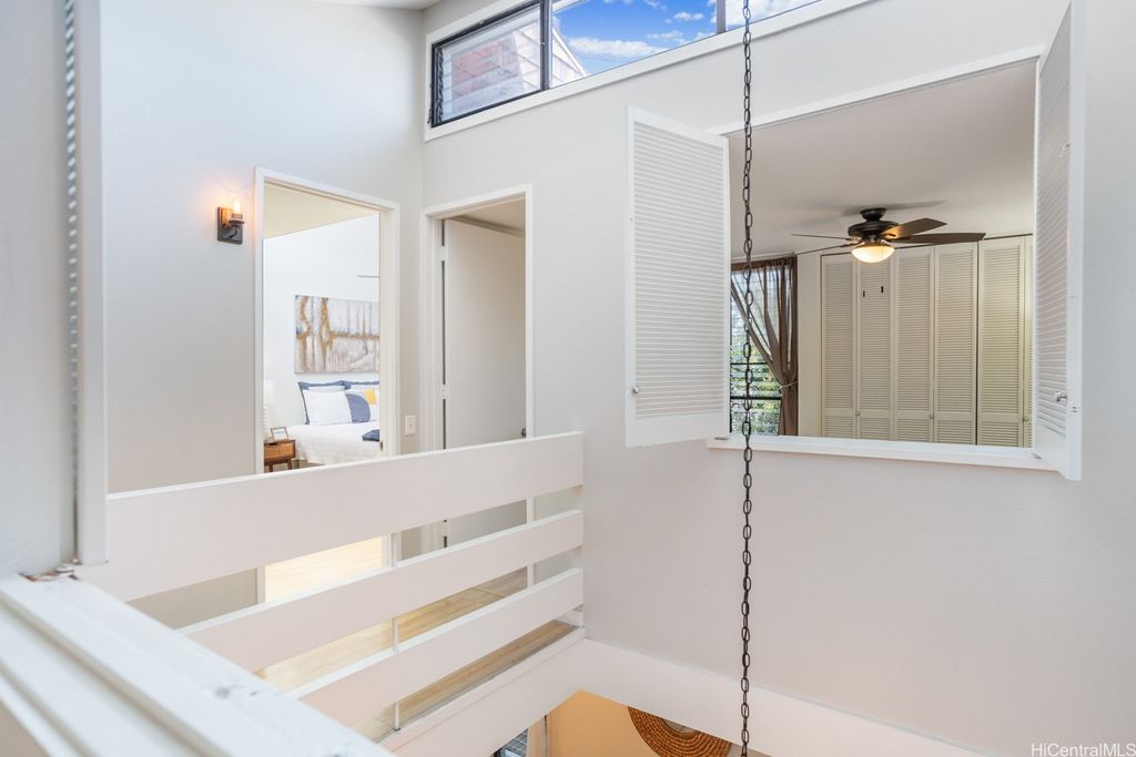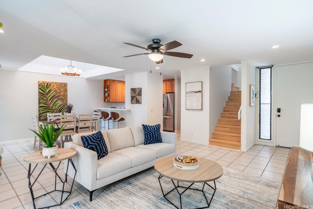 Experience the comfort of single-family living in this spacious 3-bedroom, 2.5-bath Gardenia Manor townhome. With soaring ceilings and nearly 1,500 sq. ft. of thoughtfully designed living space, this home offers an airy, open feel perfect for island living. The generous main level flows seamlessly to a large lanai surrounded by lush treetop views "” ideal for outdoor dining or quiet relaxation. Upstairs, the primary suite features its own private lanai, walk-in closet, and en suite bath, creating a peaceful retreat. Two additional bedrooms each open to charming Juliet balconies, welcoming in natural light and gentle trade winds. Beautifully updated throughout, this home blends comfort and style with modern finishes and effortless flow. Gardenia Manor is one of Kailua's most sought-after communities "” pet-friendly, well-managed, and complete with lush landscaping, a sparkling pool, and recreation areas. Two covered parking stalls are conveniently located near a rare extra storage space. Just minutes from Kailua Beach, shops, and dining, this is island living at its best in the heart of Kailua.