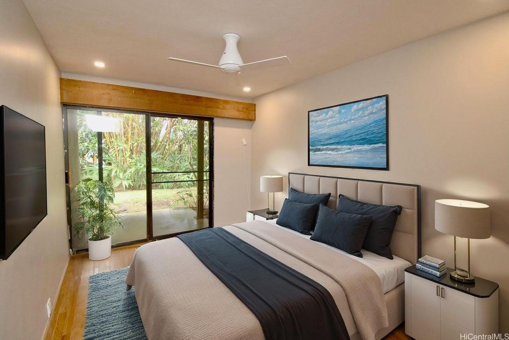 World Class tropical island living in this stunning, 3-bedroom, 2-bath tri-level townhome in the lush and peaceful surroundings of Kaneohe. Step into your own private sanctuary where vibrant tropical flowers and greenery frame every view, while vaulted ceilings and expansive windows fill the home with natural light and gentle breezes. The open main level is perfect for entertaining, featuring custom finishes and exposed beams that create an airy, inviting atmosphere. The primary suite offers ultimate privacy upstairs, while two additional bedrooms below provide space for family or guests. Enjoy the convenience of two assigned parking stalls and relax in resort-style amenities including a sparkling pool, jacuzzi, kiddie pool, sauna, and scenic walking paths. This serene escape blends comfort, style, and natural beauty"”ready for you to call home today! VA ASUMABLE LOAN AT 2.65%. Bonus room has closet that can easily be used as 4th bedroom. SELLER WILLING TO ALLOW NON-VETERAN TO ASSUME.