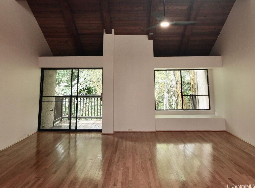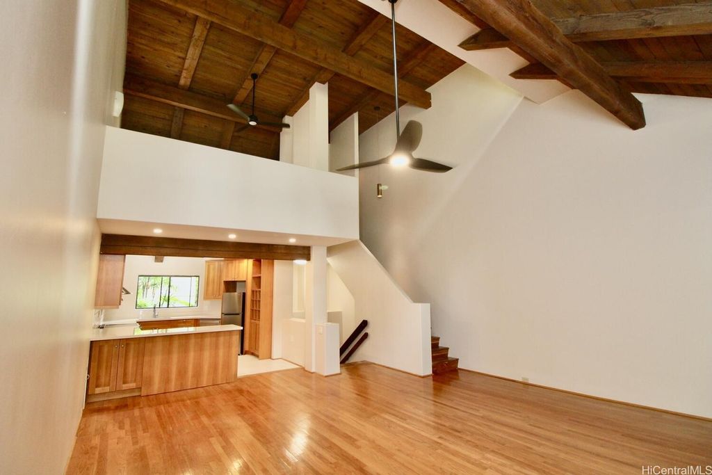 World Class tropical island living in this stunning, 3-bedroom, 2-bath tri-level townhome in the lush and peaceful surroundings of Kaneohe. Step into your own private sanctuary where vibrant tropical flowers and greenery frame every view, while vaulted ceilings and expansive windows fill the home with natural light and gentle breezes. The open main level is perfect for entertaining, featuring custom finishes and exposed beams that create an airy, inviting atmosphere. The primary suite offers ultimate privacy upstairs, while two additional bedrooms below provide space for family or guests. Enjoy the convenience of two assigned parking stalls and relax in resort-style amenities including a sparkling pool, jacuzzi, kiddie pool, sauna, and scenic walking paths. This serene escape blends comfort, style, and natural beauty"”ready for you to call home today! VA ASUMABLE LOAN AT 2.65%. Bonus room has closet that can easily be used as 4th bedroom.