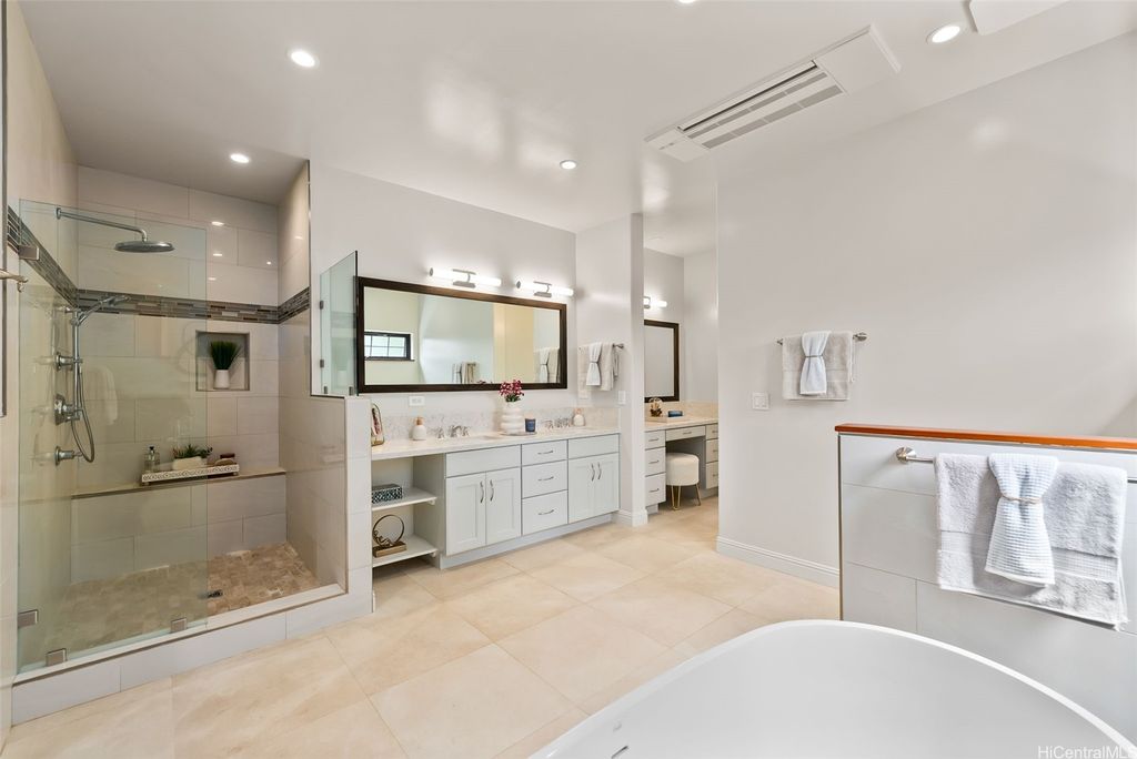 Stunning, sophisticated 6-bedroom, 5.5-bath custom residence just moments to the beach in coveted Kahala. Completed in 2021, this immaculate, nearly-new construction island gem offers nearly 5,000 sqft under roof and is being offered for the very first time. Grand entryway with soaring ceilings and statement chandelier introduces refined interiors, where an open-concept design flows between expansive living area and gracious outdoor spaces. Thoughtfully designed for livability, comfort and entertaining, the home features two luxurious primary suites - one on each level - including ground-floor primary with adjoining bonus room ideal for an office, retreat. Separate first-level ensuite is perfect for multi-gen living or guests. Stacking glass doors in living area lead to a custom gazebo and pool. Chef's kitchen features a spacious island, premium JennAir appliances with gas range, and an oversized walk-in pantry. Porcelain tile, luxury vinyl flooring, flush-mounted Mitsubishi AC systems throughout. Situated on Kolohala Street, just two short blocks to beach, this exceptional property presents a rare opportunity to own a nearly new home in one of Hawaii's most desired neighborhoods.