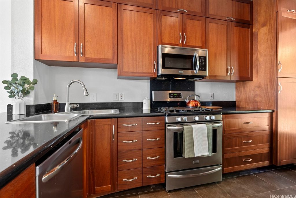 Don't miss this gorgeously updated ground-floor townhome in the well-maintained Kekuilani Villas. This delightful 2-bedroom, 1-bathroom home with 2 assigned parking stalls features desirable golf course views overlooking Kapolei Golf Course. Inside, enjoy an updated kitchen and bathrooms, tile flooring throughout, and high ceilings that create a bright and airy atmosphere. Residents also enjoy access to community amenities including a pool and BBQ area, along with ample guest parking for family and friends. Conveniently located near Ka Makana Ali"˜i Mall, shops, eateries, boutiques, daily necessities, and the rail, this move-in ready home offers the perfect blend of comfort and lifestyle.