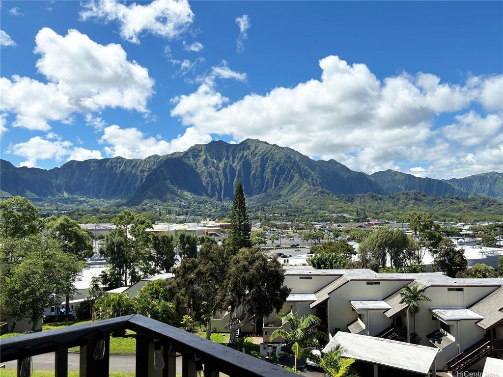 Rarely available townhouse in the desirable Puu Alii 1 community at the heart of Kaneohe. The home features its own enclosed garage (2 stalls: one in garage and uncovered tandem stall), a lanai with beautiful Ko'olau mountains & Kaneohe Bay views, and a great layout with both bedrooms on the bottom floor, so the top floor can be for hosting. Kitchen and bathrooms renovated with new countertops and cabinets. Great amenities include pool, hot tub, tennis courts, BBQ areas, and other great recreational areas for your enjoyment. Prime location, minutes away from the Kaneohe Bay Shopping Center, Windward Mall, main highways, H3 freeway, and so many shops/restaurants.