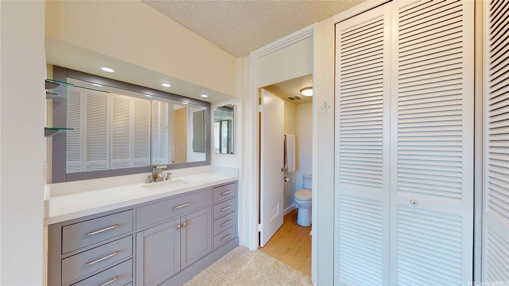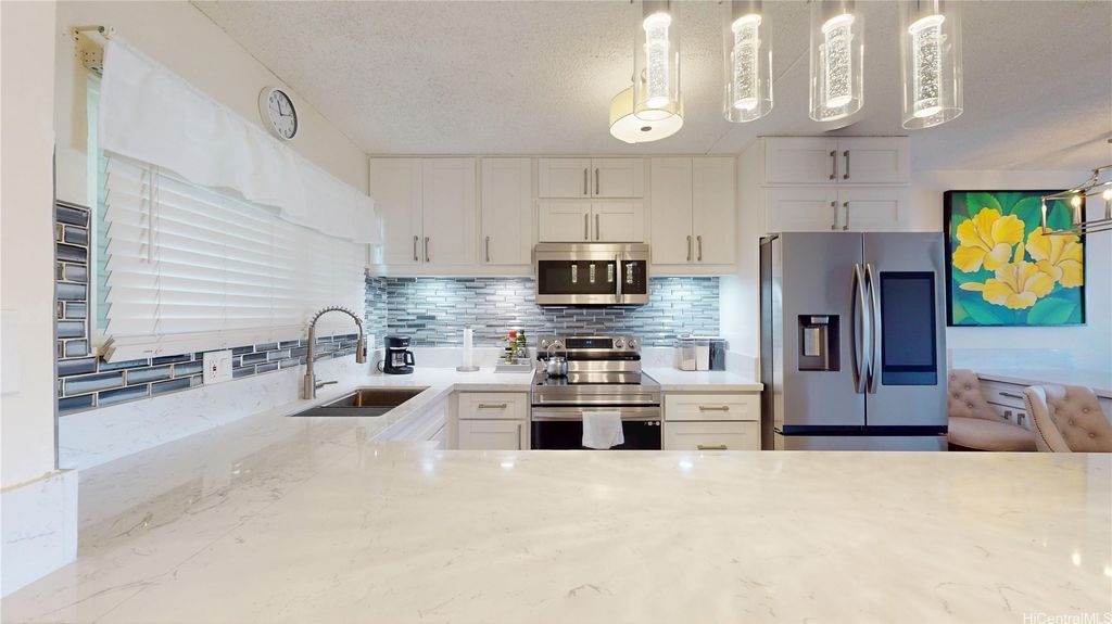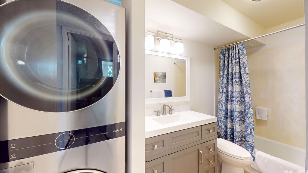 Experience island living at its best in this beautifully updated condo that exudes pride of ownership. Quietly located toward the end of the hall, this unit offers exceptional privacy and minimal foot traffic. Enjoy refreshing mauka breezes that keep the home cool year-round, or rely on the new 18,000 BTU Air Conditioner unit for added comfort. The modern kitchen features stainless steel appliances, upgraded lighting, and sleek finishes. The spacious living area includes a built-in bar counter, perfect for relaxing or entertaining. Step onto your private lanai to take in sweeping views from Diamond Head sunrises to Ewa sunsets. Dual-pane sliders ensure a peaceful retreat. Additional highlights include a brand-new LG washer and dryer, upgraded vanities with soft-close cabinetry, and access to resort-style amenities including a pool, gym, sauna, putting green, and a tennis/pickleball court. Close to world class beaches, dining, shopping & entertainment, this condo combines modern style, comfort, convenience and privacy. This unit comes with 1 assigned parking and ample guest parking. The Waipuna building is well maintained with an on-site building manager Monday through Saturday.