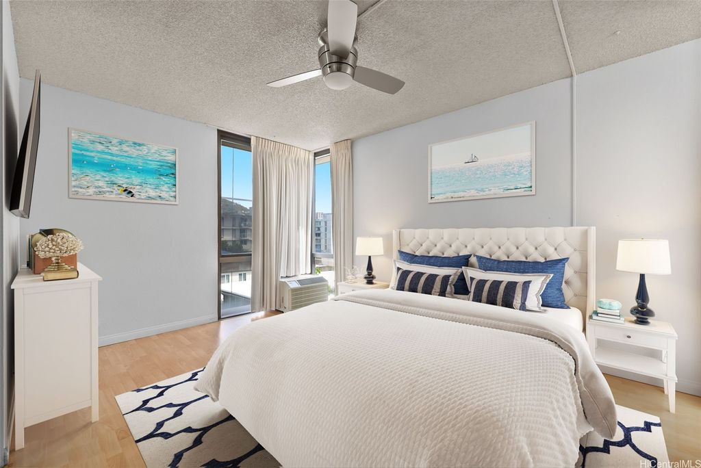 Bright, spacious, and airy corner-end unit in the heart of Makiki"”just minutes from the freeway, schools, and shops"”with secured, covered parking. This pet-friendly, 100% insured, VA-approved building offers comfort and convenience. The unit features extra windows for abundant natural light, a full-size washer and dryer, and updated bathtubs and showers in both bathrooms. Current building improvement projects include spalling repair and exterior painting, as well as refinishing of walkways and the pool deck. Elevator modernization and DWV (Drain, Waste & Vent) repiping have already been completed. The unit is in good condition and ready for your personal touches. 3 photos have been virtually staged (enhanced).