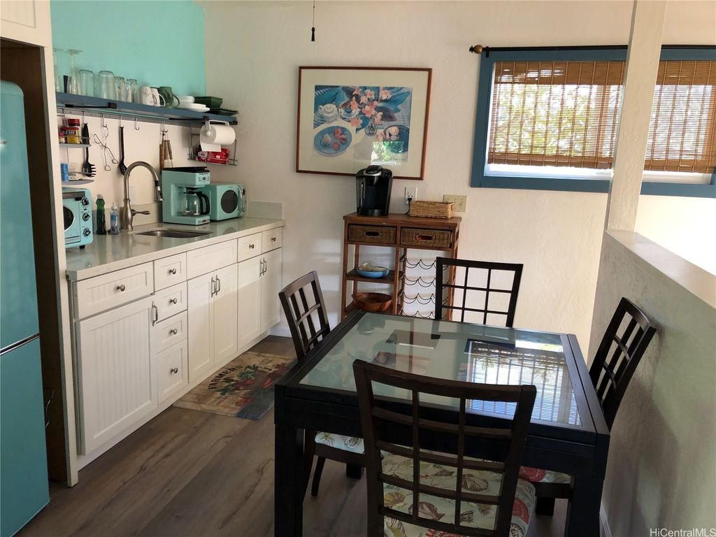 Available Now! This furnished 1BR rental spans the entire top floor, of a 2-story house with its own covered parking, entry & large covered deck, it has expansive views, that encompass the majestic Koolau mountain range & partial view of the sparkling ocean. The BR features a cozy king-size bed, AC & TV, & the living room offers a full-size futon couch/bed, AC & TV, accommodating additional guests. The well-stocked kitchen allows you to prepare your favorite meals with ease, while the spacious covered deck beckons you to embrace the outdoors making use of the wood dining set, or simply unwind on the comfortable cushioned teak lounge chairs & enjoy the beachside breezes. Many have also lauded the prime location, just a 60 second walk from a captivating 3/4-mile-long stretch of sandy beach(at the end of the lane) & a 3-minute walk to the nearby shopping center with grocery stores, pharmacy, post office & restaurants. Rent, with a 1-year renewable lease, is $2750/mo. This includes all utilities(Electric, Water/Sewer, Cable, WiFi, Yard & Pest Service, Trash Pickup). A 6-month renewable or month-to-month lease is also available. Small inside pet friendly only.