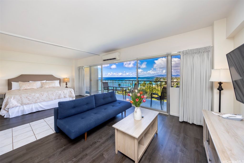 Welcome home to Waikiki Shore, one of Honolulu's most iconic oceanfront condominium destinations. Situated along Waikiki Beach, this unrivaled location puts sandy beaches, verdant parks, dining, shopping, entertainment and more at your doorstep. This higher-floor 1-bedroom, 1-bath, 706 sq.ft. residence with a spacious 124 sq.ft. lanai enjoys dynamic 180-degree panoramic views stretching from the Pacific Ocean, along Waikiki Beach and DeRussy Park, to Waikiki and the majestic Koolau Mountains. The interior has been updated with a split A/C system, modernized kitchen and bathroom spaces, upgraded flooring, lighting, and more. Property qualifies for daily short-term rental, great for investment, second home, or primary residence. Discover unparalleled beachfront island living at Waikiki Shore. Listing includes enhanced, zoomed-in photos.