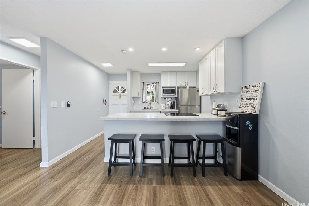 VA ASSUMABLE RATE AT 4.75%! Welcome to one of the most desirable places to live on the island, Makakilo Cliffs! This beautifully-maintained 2 bed, 2 bath, ground floor unit offers a scenic, island-living feel. Thoughtfully renovated in 2022, the kitchen features stainless steel appliances and quartz countertops to give this home a modern touch. Slide open the doors onto your private outdoor lanai to enjoy an outstanding breeze with ocean and mountain views all around. Outside, you'll find your 2 covered parking spots as well as a community barbeque and patio. Conveniently located nearby is the Kapolei Shopping Center as well as several other cafes and eateries, this home is perfect for those who like to be close to town, while having their own relaxing getaway.