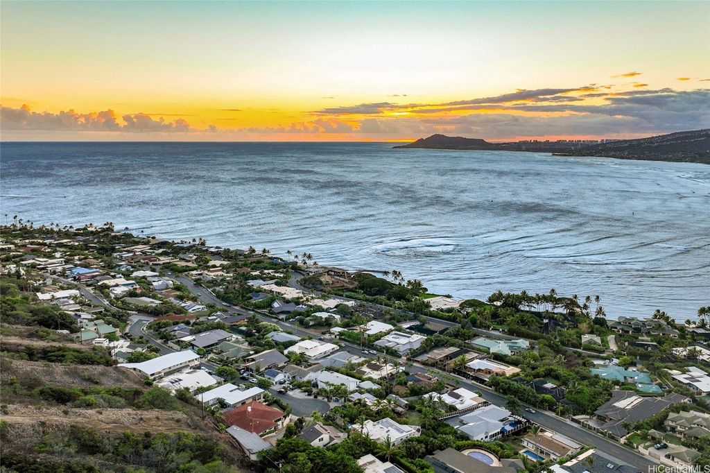 Luxurious Breathtaking Ocean and Sunset Views! Elevated on one of Oahu's most prestigious neighborhoods, this mid century modern single-level, four-bedroom plus den, two-bath residence captures the essence of relaxed island luxury. Framed by sweeping ocean vistas and radiant evening sunsets, the home offers a seamless blend of comfort and elegance. Expansive picture windows invite the views inward, creating a light-filled sanctuary where the ocean feels like an extension of your living space. Step onto the spacious front lanai, perfect for sunset gatherings, morning coffee, or simply savoring the stillness of golden afternoons and timeless Hawaiian charm. The generous front grounds provide both convenience and opportunity, with ample room to expand the home or lanai, allowing your vision to unfold with ease. The existing pool, currently covered, remains ready to be reimagined as the centerpiece of your private outdoor oasis. Revel in the simple elegance of this home with a lifestyle defined by serenity, sophistication, and the natural beauty of Hawaii's coastal living.