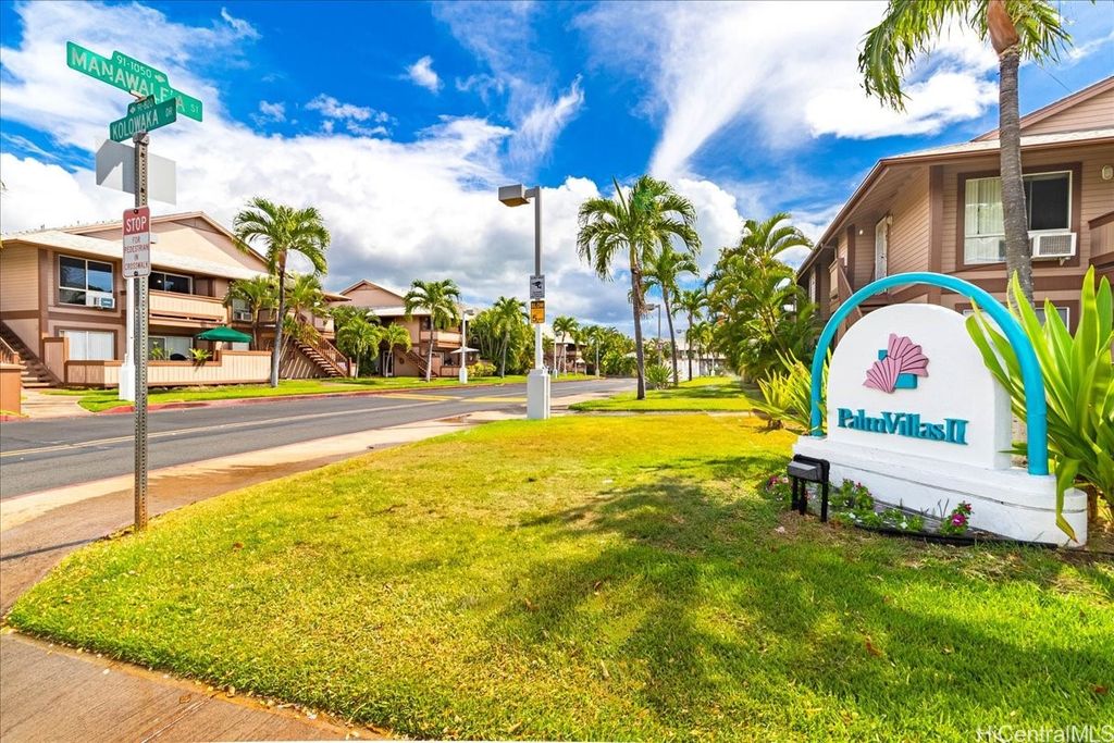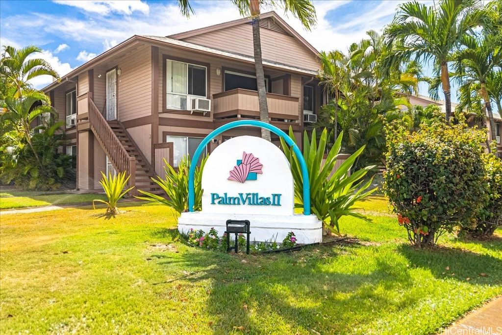 Welcome to this charming 2-bedroom, 1.5-bath townhome in the desirable Palm Villas II community in Ewa Beach. This well-maintained walk-up unit offers 716 sq. ft. of living space with an open layout that flows seamlessly from the living area to the dining and kitchen. Enjoy relaxing outdoors on your private 52 sq. ft. covered lanai, perfect for morning coffee or evening sunsets. This home features two assigned parking stalls, in-unit laundry, and a convenient location near shopping, dining, schools, and parks. Palm Villas II offers a pet-friendly environment (verify), on-site management, and a recreation area with a pool and BBQ spaces for residents to enjoy.