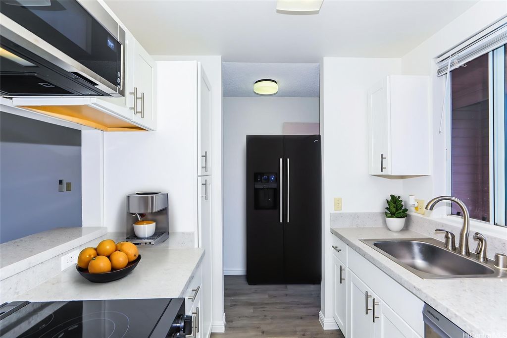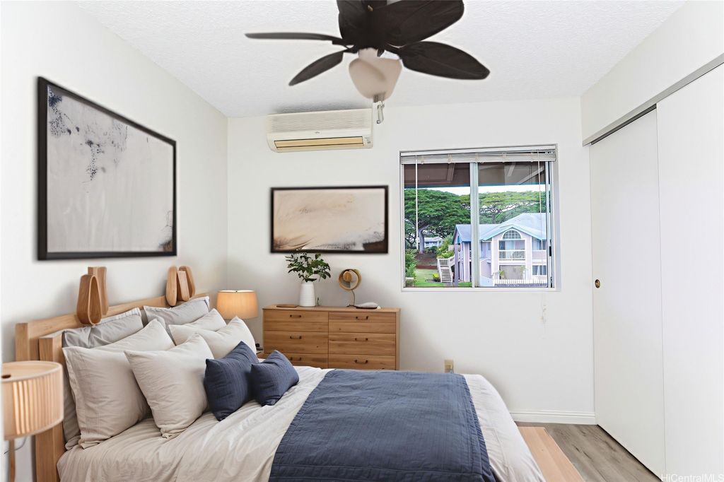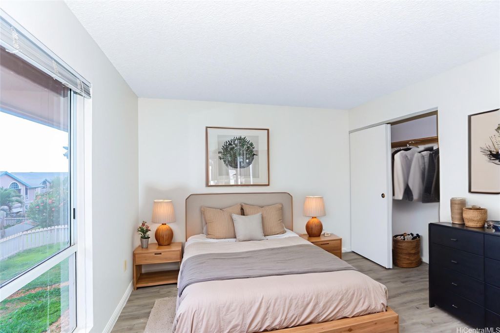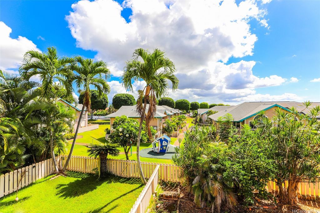 Welcome to Ho"˜omaka at Waikele "” where island comfort meets everyday convenience. This charming upstairs 2-bedroom, 2-bath home invites you into a bright, breezy space cooled by two quiet split A/C systems. Step inside and you'll immediately notice the thoughtful upgrades completed in the spring and summer of 2025 "” a modern kitchen with new cabinets, countertops, dishwasher, stove, and microwave, complemented by fresh flooring and interior paint throughout. Your assigned parking stall is conveniently located right in front of your door, with ample guest parking just steps away. In the mornings, enjoy your coffee on the lanai as the sun rises over the community, and in the evenings, unwind while watching children play at the nearby playground. Located within walking distance of the Waikele Premium Outlets, restaurants, gym, parks, and two sparkling community pools, Ho"˜omaka offers the perfect blend of relaxation and accessibility "” a place where daily life feels easy, connected, and distinctly Hawaiian.