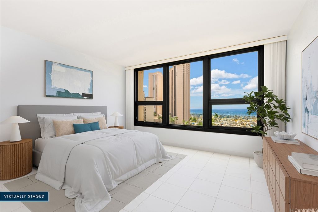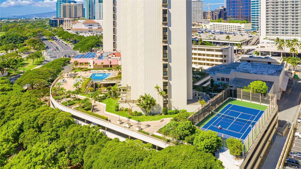 Don't miss this well-maintained unit! Join us for the First Public Open House on October 19th, from 1 PM to 6 PM. Enjoy spectacular ocean, sunset, and yacht harbor views from this elegantly remodeled unit, completed 10 years ago with $150,000 in upgrades. It features high-quality finishes, including quartz countertops, porcelain tile, bamboo cabinetry, a built-in office desk, a bookcase, and much more. The enclosed lanai enhances the spacious and comfortable living area. Amenities include a BBQ area, patio/deck, swimming pool, tennis court, exercise room, and more. This unit is in a prime location, within walking distance to Waikiki, fine dining restaurants, Ala Moana Beach Park, Magic Island, and Ala Moana Shopping Center. Plus, it is conveniently located near the bus line!