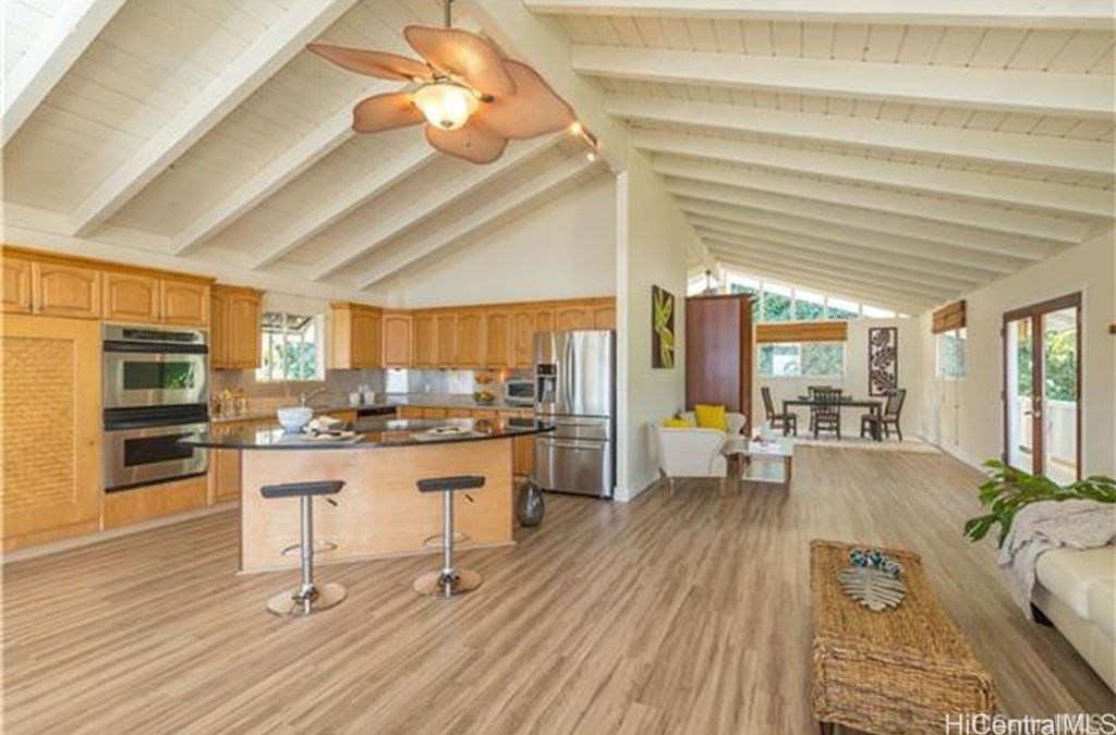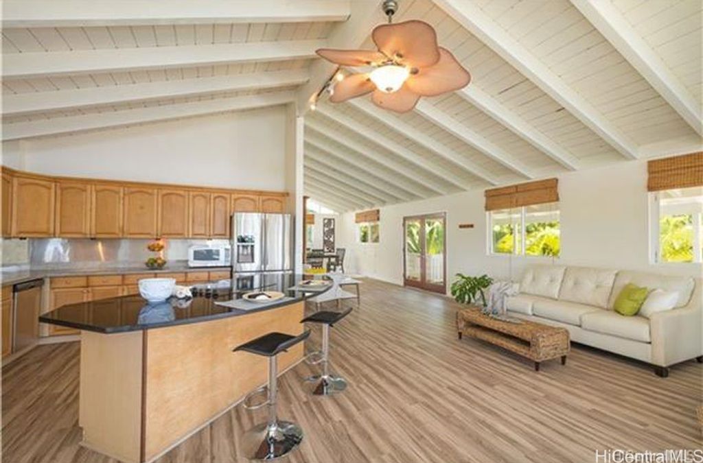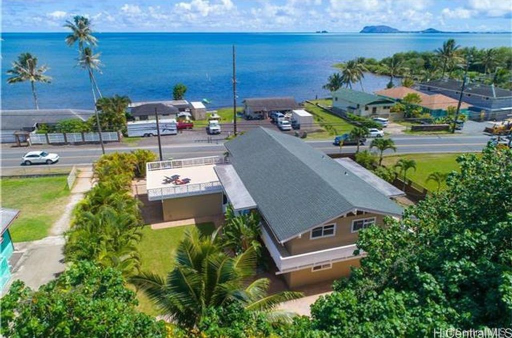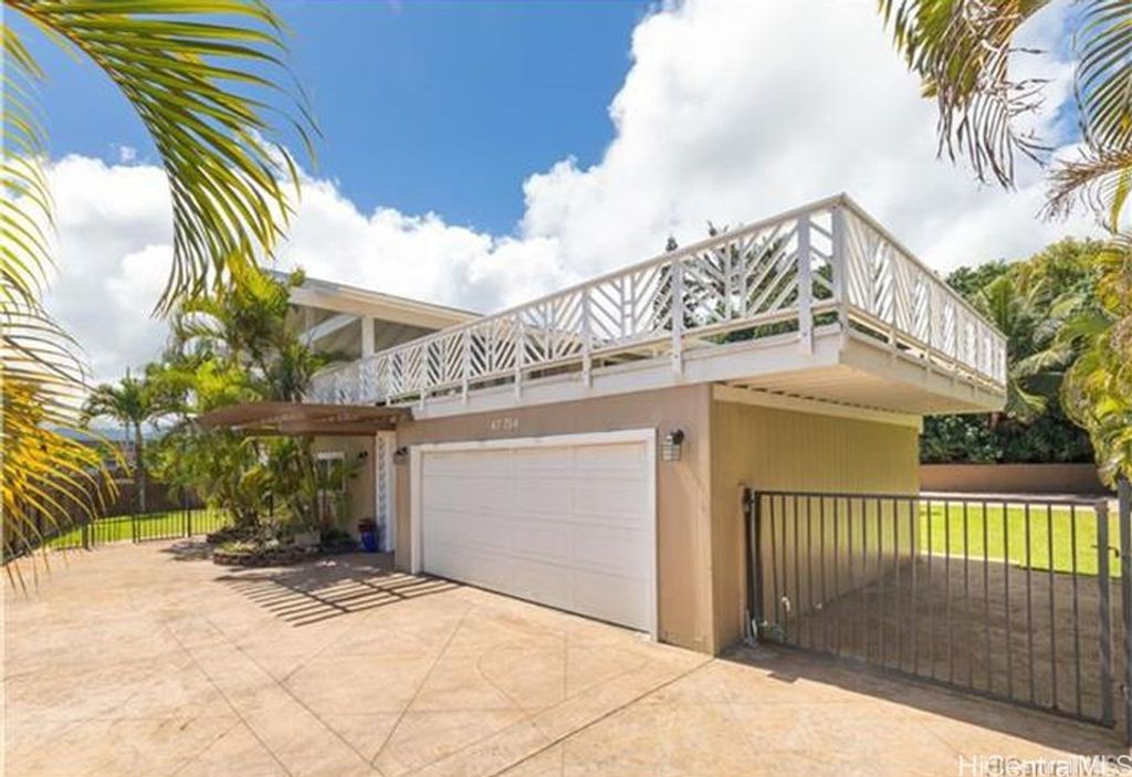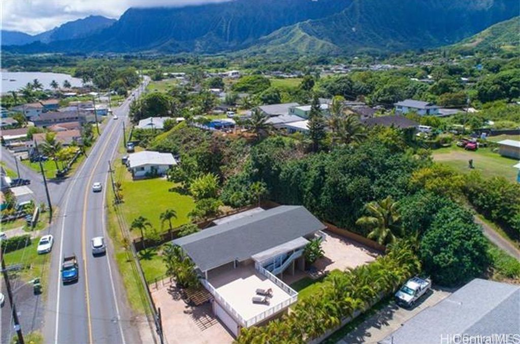 One of the largest lots and homes on Kam Hwy in Kahaluu. Spacious interior and exterior, Great and large lanai with views of Kaneohe bay and Chinamans Hat. Yard completely fenced and gated. Large portion of yard stamped concrete. 2 car garage with enough space for an additional 4 vehicles in driveway. Split air conditioning on 2nd floor. Ceiling fans for all first floor bedrooms. 1st floor block and stucco. Layout allows flexibility to split living / bedrooms for separate units Convenient location, short drives to MCB, Windward Mall, Likelike, H3. Listing agent is owner. For sale as is.