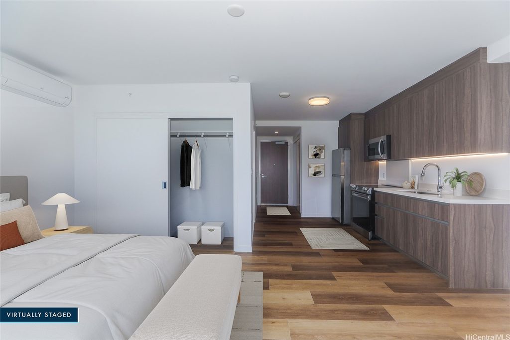 Be the first to live in this brand new studio apartment at The Park On Ke'eaumoku. This new luxury condominium has it all; beautiful infinity pool, jacuzzi, spa, fully equipped fitness center, media room, conference room and more! Floor to ceiling, double paned, tinted windows allow an abundant amount of natural light and your split AC will keep you cool. Luxury vinyl planks, quartz counter tops, stainless steel appliances and full size spacious bathroom. Centrally located with Ala Moana Shopping Center, Ala Moana Beach Park, Walmart, Sam's Club, Target and restaurants all close by. Minutes to Downtown Honolulu and Waikiki Beach, or just hang out at the pool and bar-b-que. Rent includes Sewer and cold water. Tenant is responsible for electricity, cable and wifi. Please call/text the owner with questions or to schedule a showing, Kupono Fey 808 554-7271 or email KuponoFey21@gmail.com