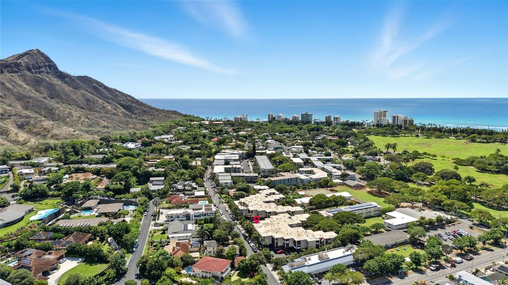 Welcome to Diamond Head Sands!!!! - A coveted boutique building ideally located between the serenity of Diamond Head and the vibrant amenities of Kapiolani Park, Monsarrat and Kapahulu Avenue. This top-floor studio enjoys soothing Diamond Head views and a peaceful ambiance just moments from Waikiki, yet set apart from the bustle of the city. Recent upgrades include a new range/oven, refrigerator, window A/C, and a beautifully updated bathroom. Perfect for those seeking a convenient island lifestyle in one of Honolulu's most desirable neighborhoods.