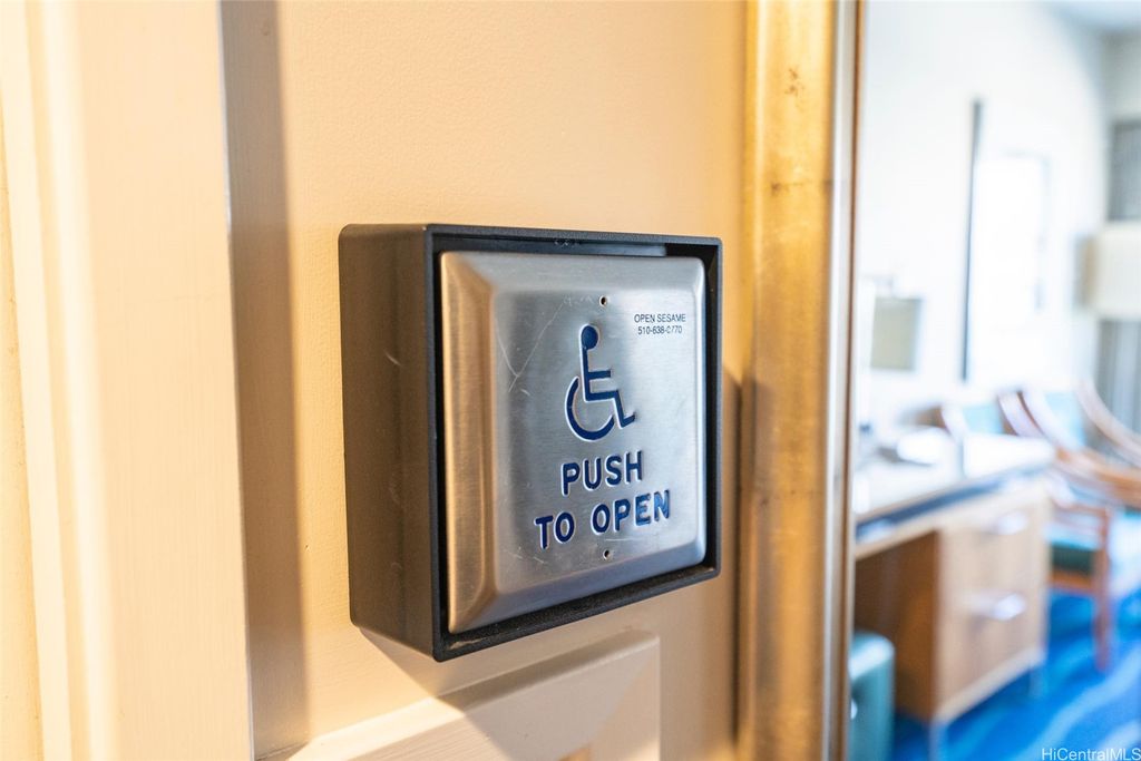 The property is ADA-compliant ,spacious, thoughtfully designed" for guests requiring additional access needs and thoughtfully designed rooms featuring automatic entry doors and large accessible bathrooms with roll-in showers and grab bars, perfect for guests with additional access needs. Located near the beach, Ala Moana Hotel in Ala Moana neighborhood and is connected to a shopping center. Ala Moana Center .