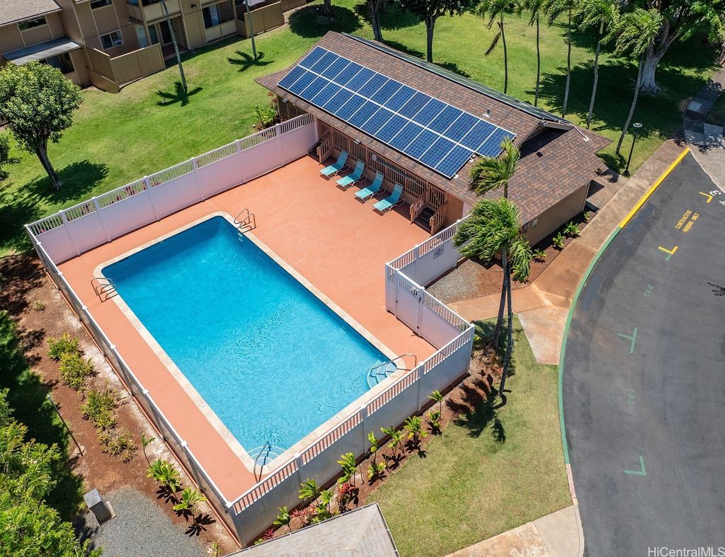 Move right into this beautifully remodeled, turnkey 2-bedroom, 2-bath single level townhome located in the highly desirable Waiau Garden Villa community of Pearl City. This pet friendly unit features an open and inviting floor plan with quartz countertops, tile and luxury vinyl flooring throughout. The beautifully designed and highly functional kitchen offers ample counter and cabinet space with stainless appliances. Enjoy the convenience of a full size washer and dryer, windows, AC, ceiling fans, modern fixtures, and water heater. Enjoy the evening breezes on your private lanai off of your primary living area. Conveniently located near shopping, grocery, dining, schools, parks, military bases, and easy access to freeway on and off ramps.