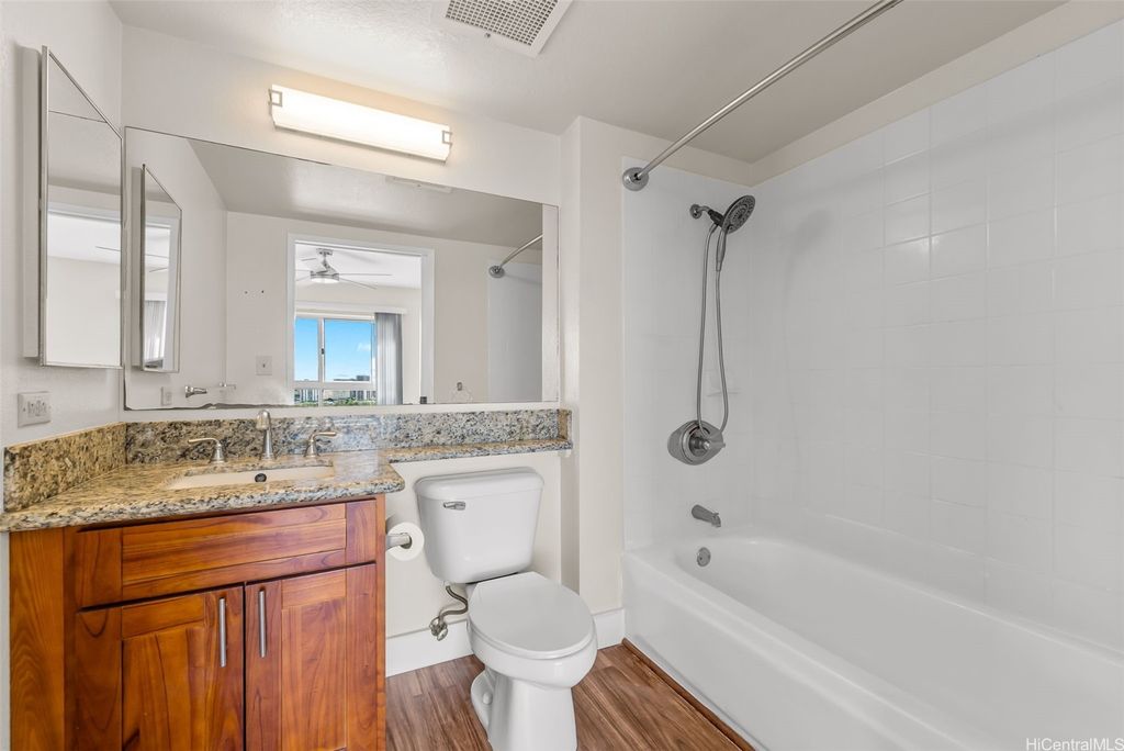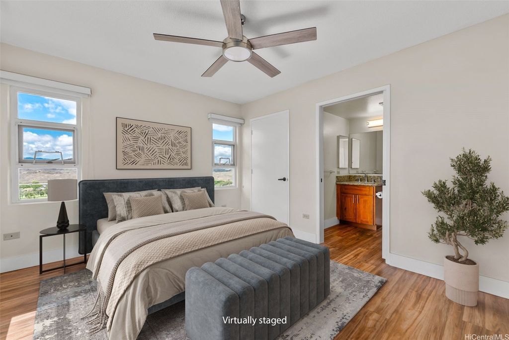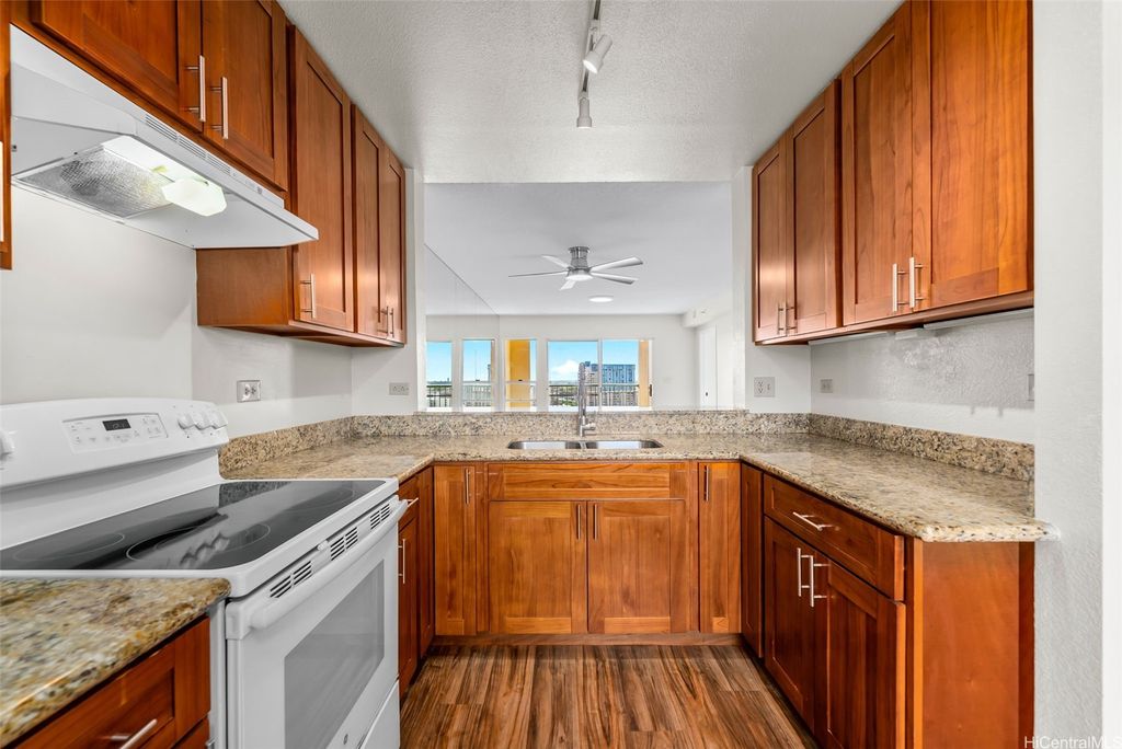 Enjoy resort living with easy access to the freeway, Tripler Hospital, Honolulu International Airport, Fort Shafter, Pearl Harbor & Hickam. From the moment you step through the gate of this preferred end unit, you'll be captivated by panoramic Golf Course & Mountain views, with historic Tripler Hospital visible in the distance. Inside, the renovated kitchen features a breakfast bar & ample space for an eat-in area, flowing seamlessly into the dining and living areas. The open-concept living space flows to a covered lanai with Ocean & Golf Course views, perfect for al fresco dining, morning coffee, or unwinding after a long day. The primary suite features tranquil mountain and golf course views along with the beautiful twinkling lights of distant buildings at night, bath with tub, a walk-in closet, and a secondary closet. This spacious home truly blends comfort and convenience! Country Club Village is a pet-friendly community offering fantastic amenities such as a pool, BBQ areas, walking paths, and abundant guest parking, making it ideal for entertaining. The property is VA approved and includes 100% hurricane coverage.