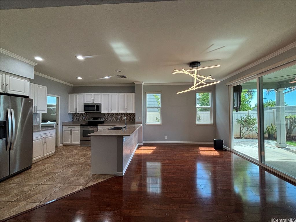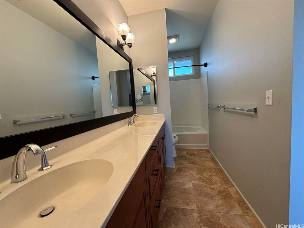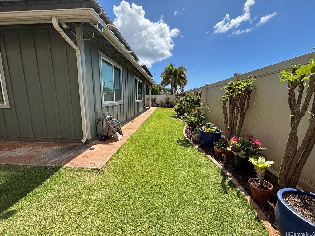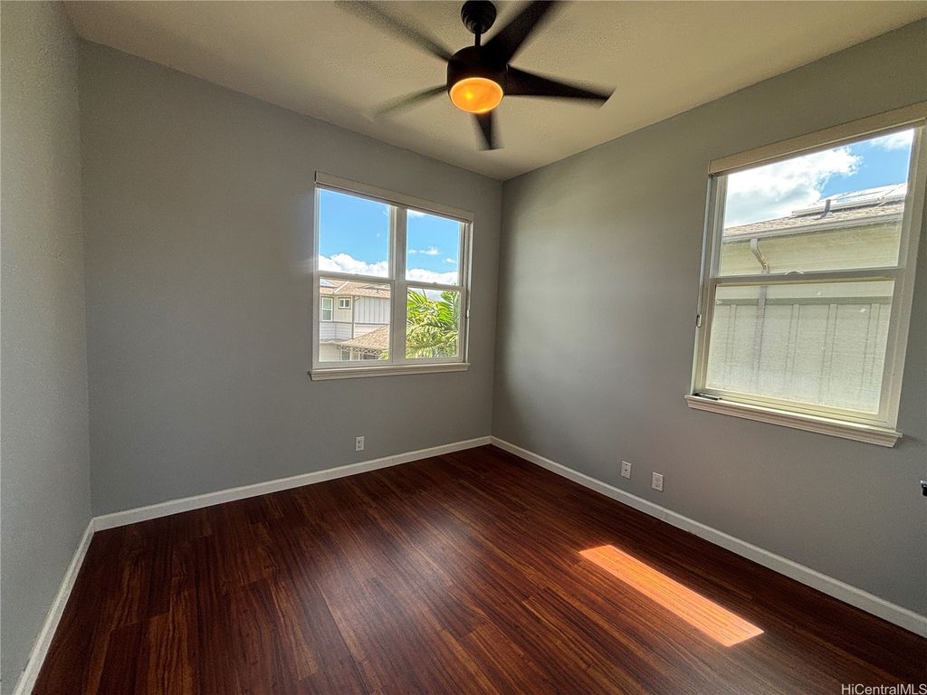 Gorgeous 4-bedroom, 3.5-bathroom single-family home in the highly desired Ewa Gentry Sandalwood community in Ewa Beach! Beautiful layout which includes an additional den! 15 PV Panels included! Spacious outdoor patio area and yard space with a TV included for entertainment. Cold central A/C in home. Home is located in a cul-de-sac with two, one car garages and spacious driveway for ample parking. Yard service included! All other utilities not included (water, sewer, electricity). Don't miss this opportunity!