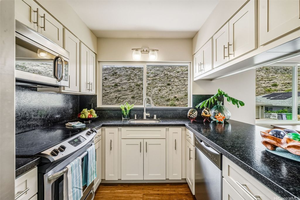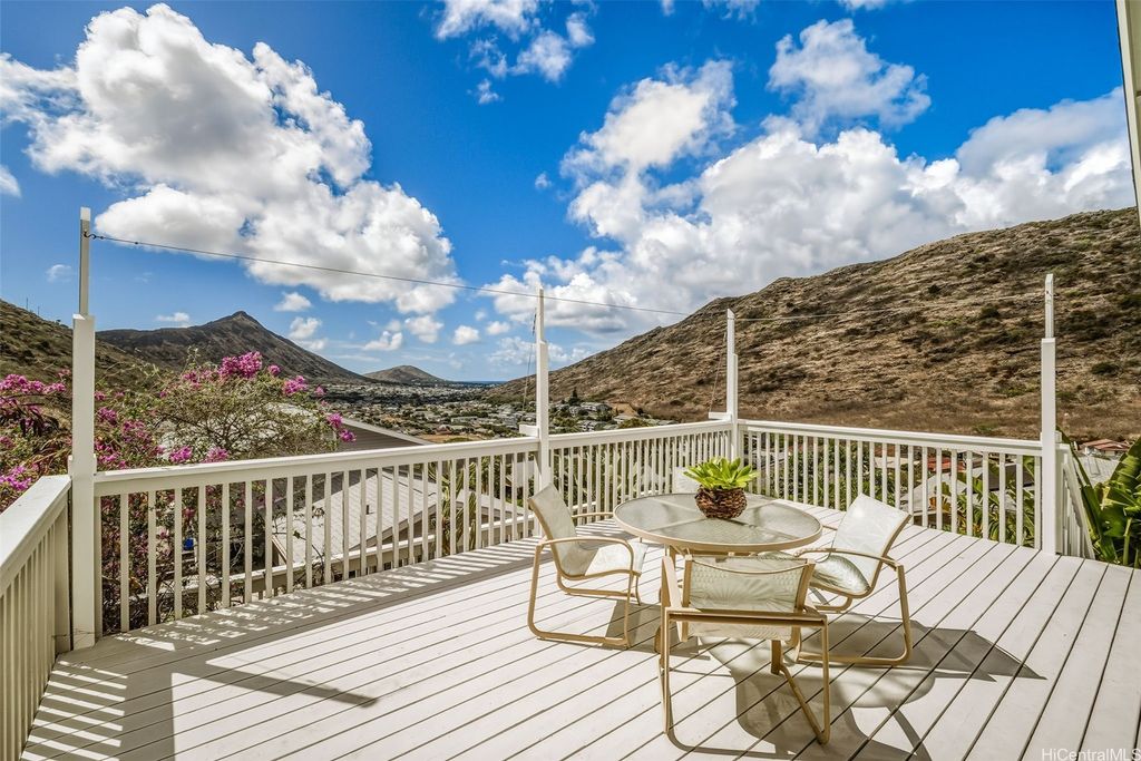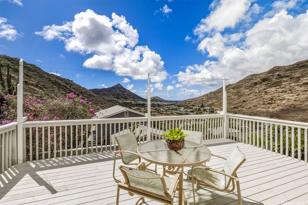 This well-maintained two story home with three-bedrooms, two-baths offers picturesque mountain and peek-a-boo ocean views, including views of both Koko Crater and Koko Head. The home features several recent upgrades, a new roof in 2024, a new deck, and some new siding. The interior has just been painted, and the exterior was painted in 2021. Also includes a two-car garage with a laundry room, both recently painted, and a solar water heating system. The backyard features banana and other fruit trees. The location offers easy access to Kamilo'iki Neighborhood & Community Parks, which provide a skate park, pickleball, tennis and basketball courts, a roller rink, playgrounds, jungle gyms, and open fields. The Hawaii Kai community offers an array of appealing features, including beautiful beaches, diverse shopping areas, scenic hiking trails, and baccalaureate programs at local schools. Miloiki Street is no longer a private road. The property is being sold "As-Is" and is easy to show. For more information, please see the supplements for the survey and additional documents. Open house this Sunday, November 2, from 2:00 PM to 5:00 PM.