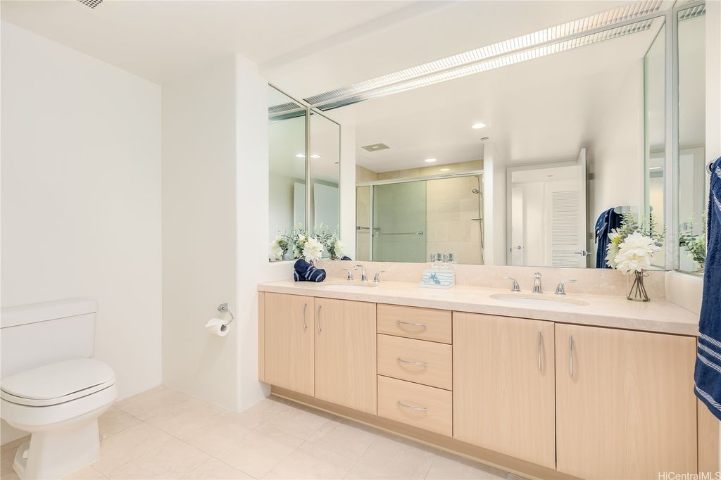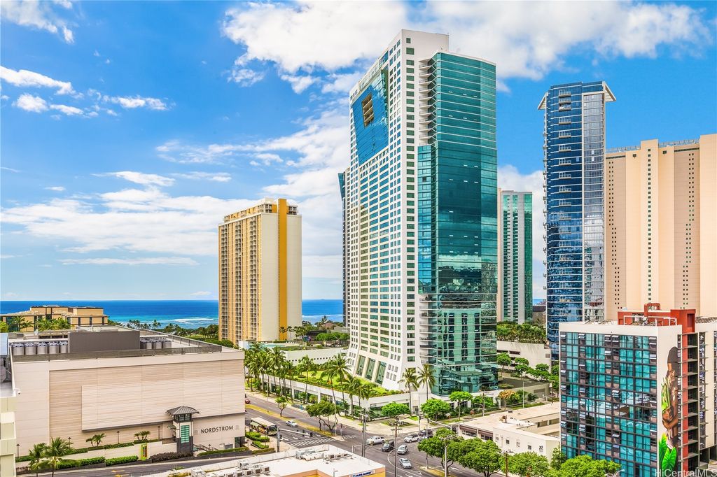 Enjoy expansive views of Diamond Head and the Pacific Ocean from the comfort of your living room or lanai. The primary bedroom features two closets, including a spacious walk-in. This unit includes two parking stalls conveniently located on the same level as the lobby for easy access. Hawaiki Tower is ideally situated across the street from Ala Moana Shopping Center and just a short walk to Ala Moana Beach Park.