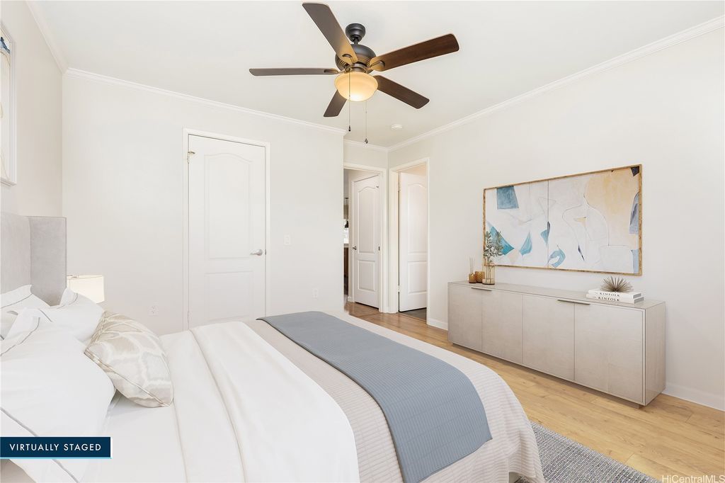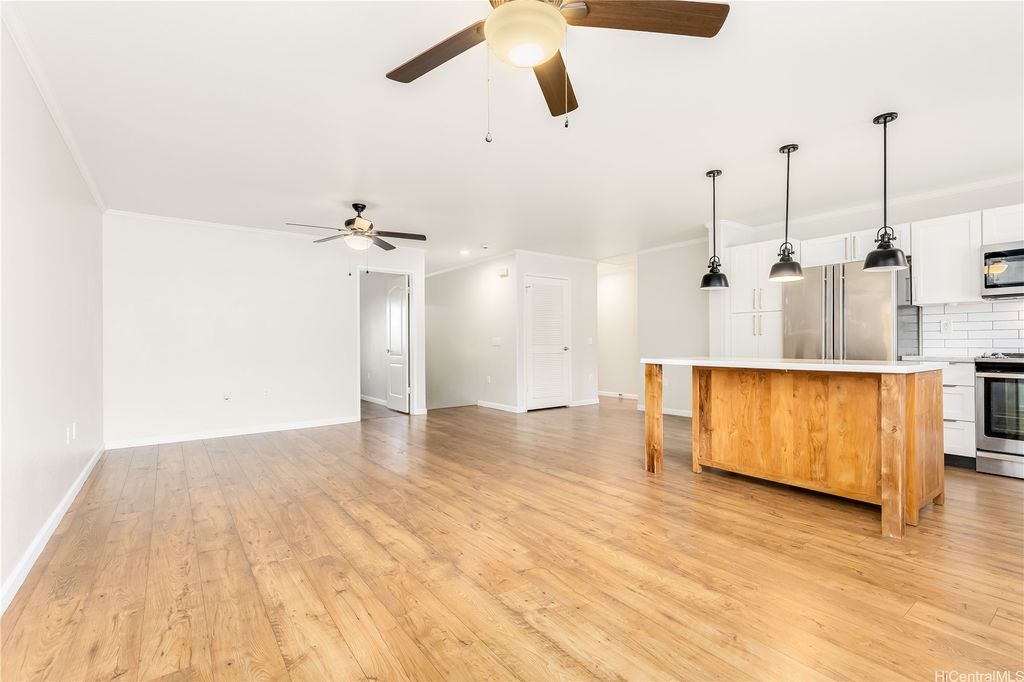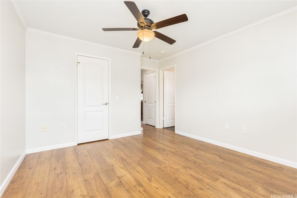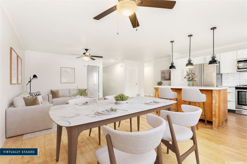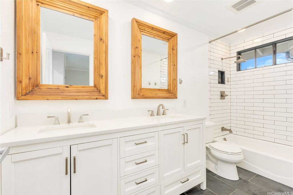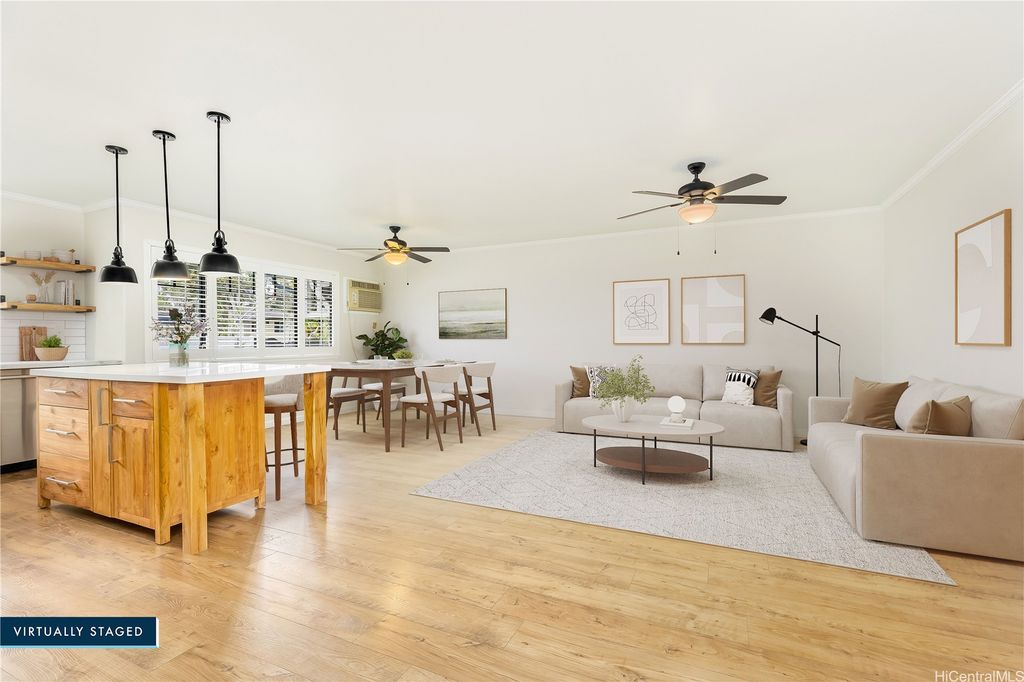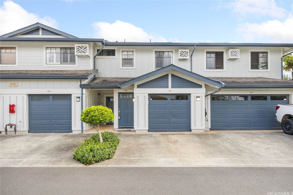 Welcome to Nohona at Mililani Mauka! This beautifully updated 3-bedroom, 2-bath townhome combines modern comfort with island living. Enjoy a bright open layout featuring a fully renovated kitchen with stainless steel appliances, quartz countertops, and a large island perfect for everyday dining or entertaining. Both bathrooms have been tastefully remodeled with contemporary finishes, and the new flooring throughout adds a warm, cohesive feel. This home includes a one-car enclosed garage with interior access plus the driveway for an additional stall. Plantation shutters, ceiling fans, and A/C units help keep the interior cool and comfortable. Nohona at Mililani Mauka is part of the Mililani Town Association, offering access to multiple recreation centers with pools, sports courts, and gathering spaces. Conveniently located near parks, schools, shops, and freeway access. Move-in ready, a must see!