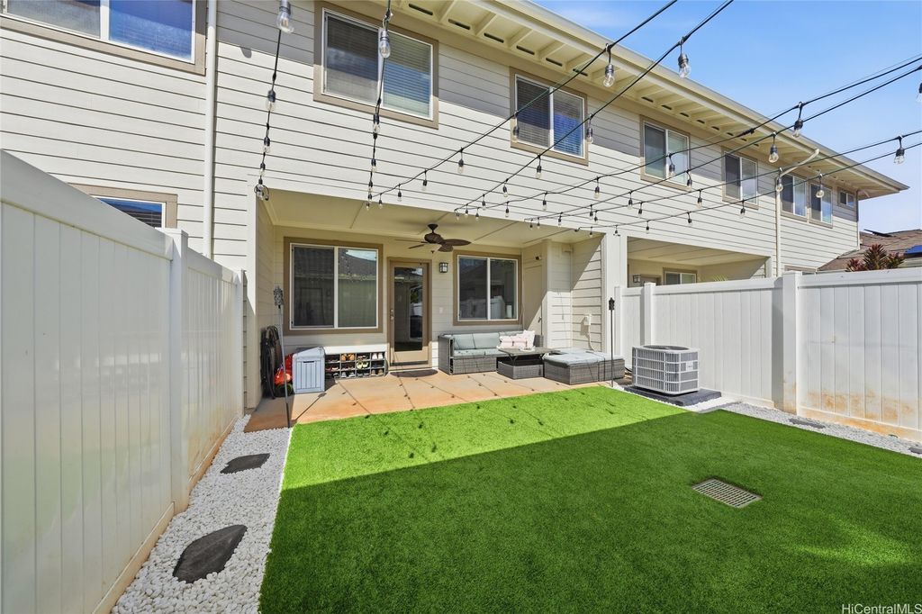 Welcome to your very own island getaway home at Ka Makana at Hoakalei! This stunning 3 bedroom 2 ½ bathroom freshly painted townhome features two stories of pure comfort. Natural light pours into this home to highlight the large kitchen with new appliances, perfect for hosting gatherings of any kind. You'll be kept nice and cool while you relax with the brand new AC system. Head upstairs to find bonus storage, as well as a brand new washer/dryer combo just outside your bedrooms for maximum convenience. The primary bedroom boasts a double vanity bedroom, a walk-in closet, and a sliding glass door to bring you right onto your upper patio. Step outside your back door to find a patio and a lush, fenced-in yard outfitted with new low-maintenance turf. This home also features a garage just past the backyard. This home is in a PRIME location, being just across the street from the Ka Makana Swim Club, tennis/pickleball courts, gym, and more. You are also a quick drive to Wai Kai, beaches, shopping, golf courses, and so many other necessities. This home has everything and more. Open House 10/26 from 2-5pm