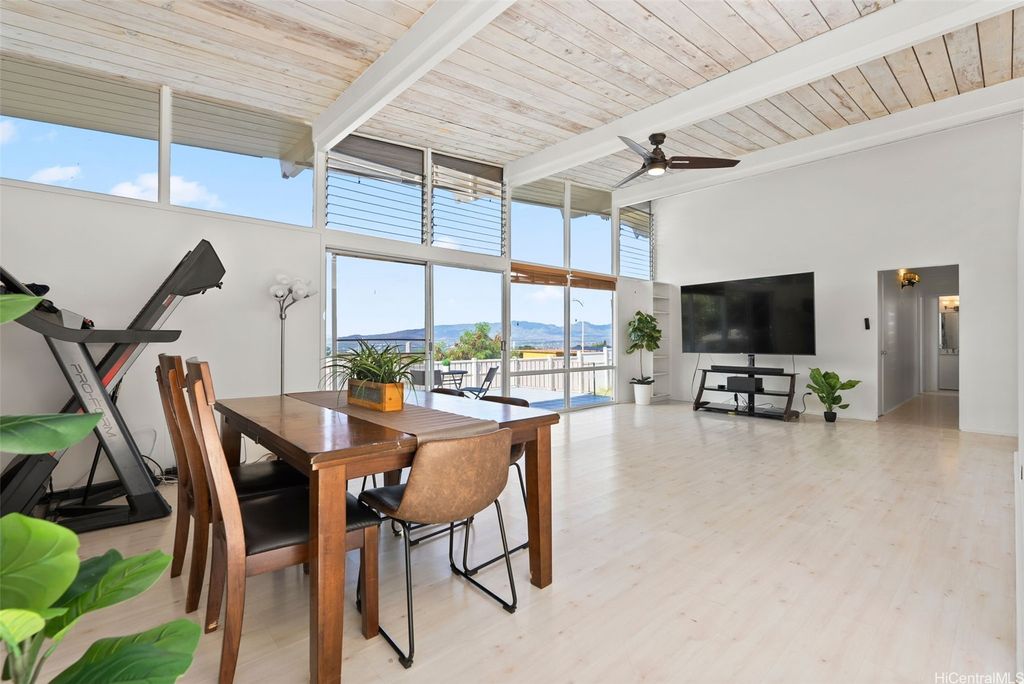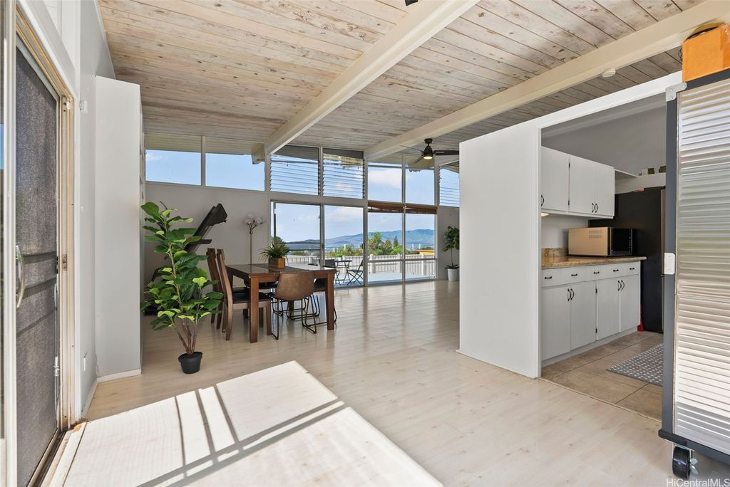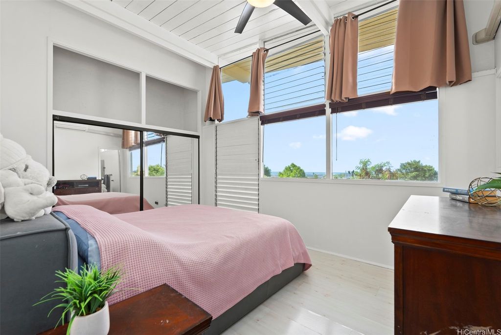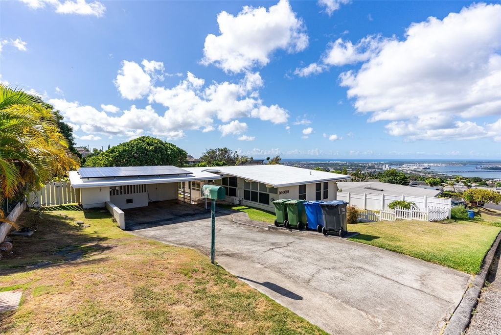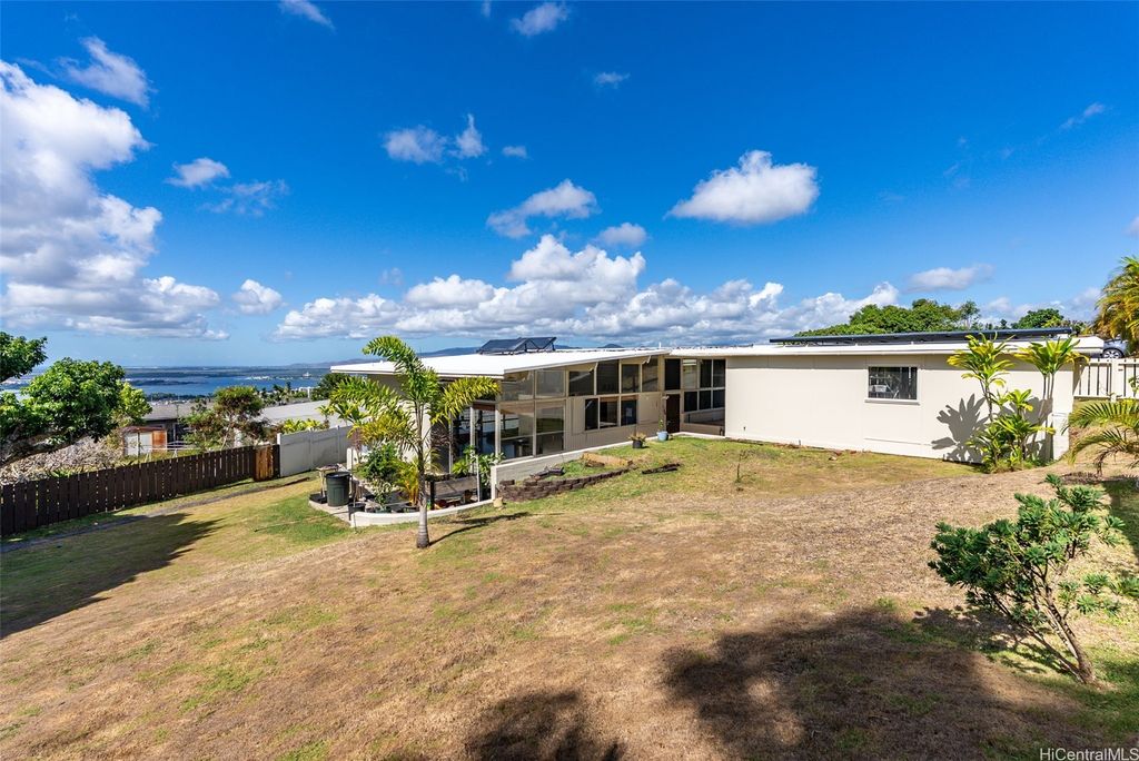 This delightful mid-century home offers an open, airy feel with high ceilings and breathtaking views of the harbor and sunsets. With 3 bedrooms and 2 bathrooms, the home has been thoughtfully updated with fresh paint inside and out, laminate flooring throughout, and modern upgrades like an updated electrical panel, split AC units, and 18 owned PV solar panels. The open-concept layout floods the space with natural light, thanks to large windows that frame the stunning surroundings. Situated on a spacious 10,000+ sq ft lot, the property is mostly fenced"”ideal for pets or children to play safely. Located in the serene Orchard Hills neighborhood of Aiea Heights, this home offers the perfect balance of tranquility and convenience, with easy access to shops, dining, and freeways. Come see why this should be your next home!