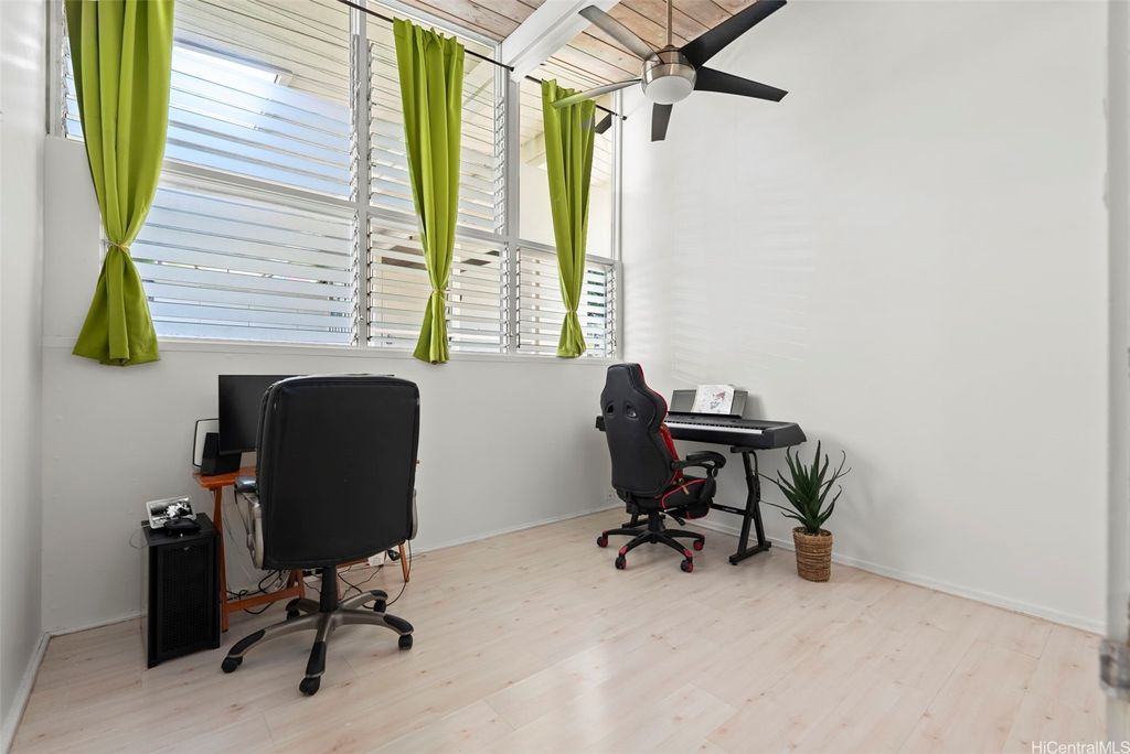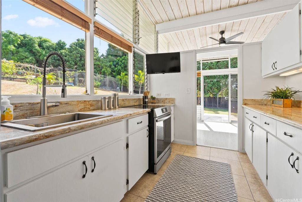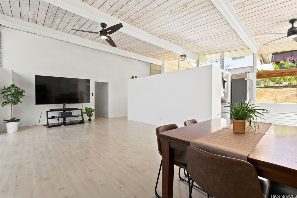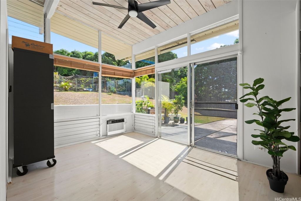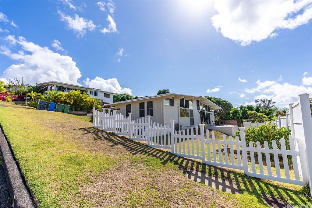 This delightful mid-century home offers an open, airy feel with high ceilings and breathtaking views of the harbor and sunsets. With 3 bedrooms and 2 bathrooms, the home has been thoughtfully updated with fresh paint inside and out, laminate flooring throughout, and modern upgrades like an updated electrical panel, split AC units, and 18 owned PV solar panels. The open-concept layout floods the space with natural light, thanks to large windows that frame the stunning surroundings. Situated on a spacious 10,000+ sq ft lot, the property is mostly fenced"”ideal for pets or children to play safely. Located in the serene Orchard Hills neighborhood of Aiea Heights, this home offers the perfect balance of tranquility and convenience, with easy access to shops, dining, and freeways. Come see why this should be your next home!