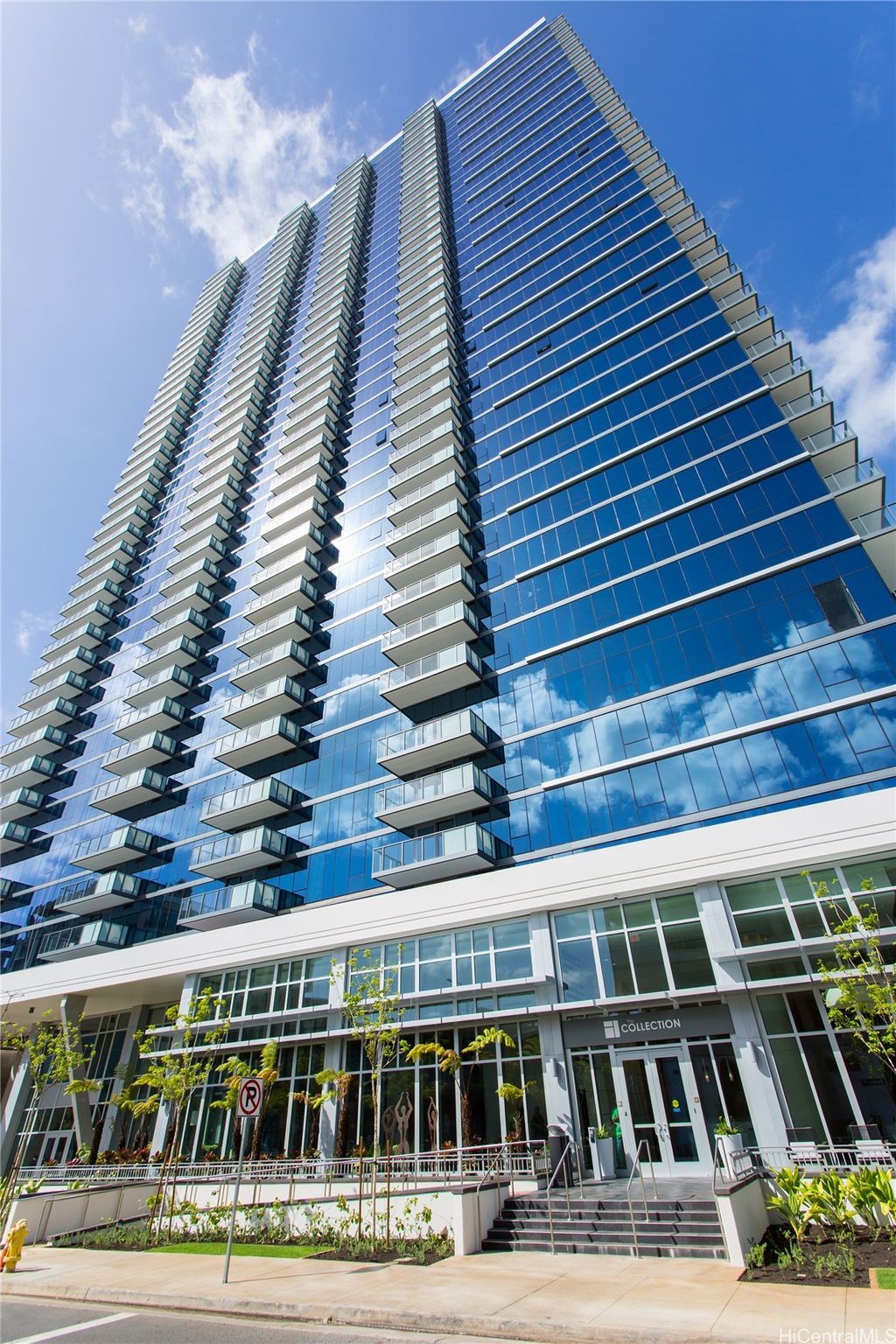 Discover refined urban living in this exceptional corner-end 09-stack residence at The Collection. Surrounded by Kaka"˜ako's best dining, boutique shopping, and entertainment, this home blends modern sophistication with island lifestyle. Highlights include custom mango wood accent walls, a split-bedroom layout with a spacious primary suite and walk-in closet, and sweeping city and ocean views. Enjoy built-in roller shades, in-unit laundry, and two rare storage options "” a standard locker plus an additional 37-sq-ft private storage room. Resort-style amenities feature a fitness center, surfboard and bike lockers, pet care facility, and recreation deck with BBQs and social spaces. Two prime parking stalls complete this exceptional offering in Honolulu's most dynamic neighborhood