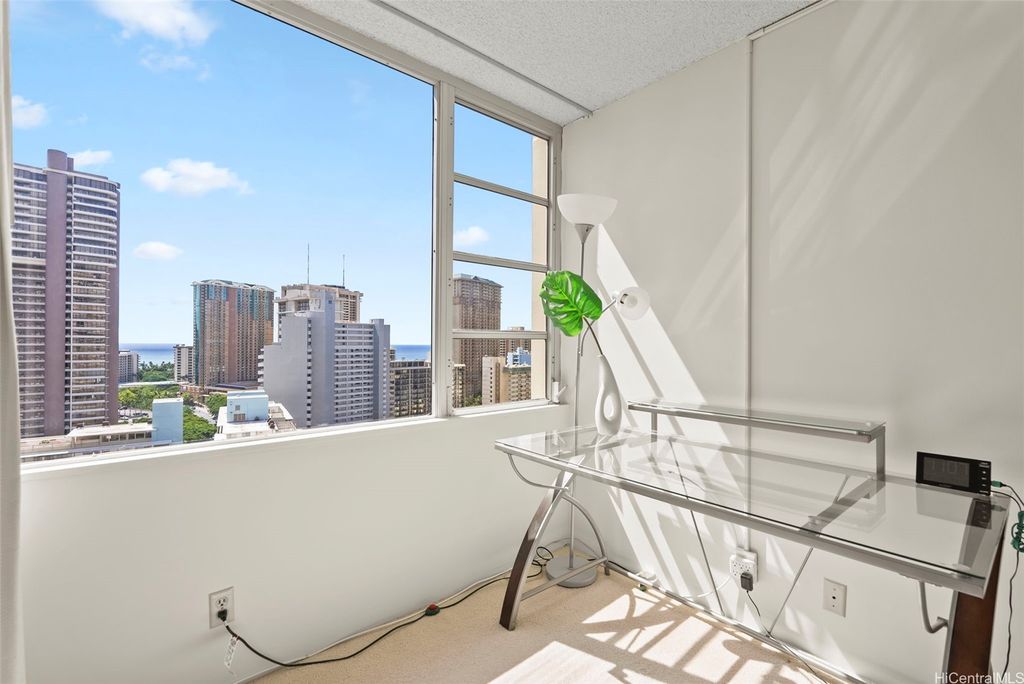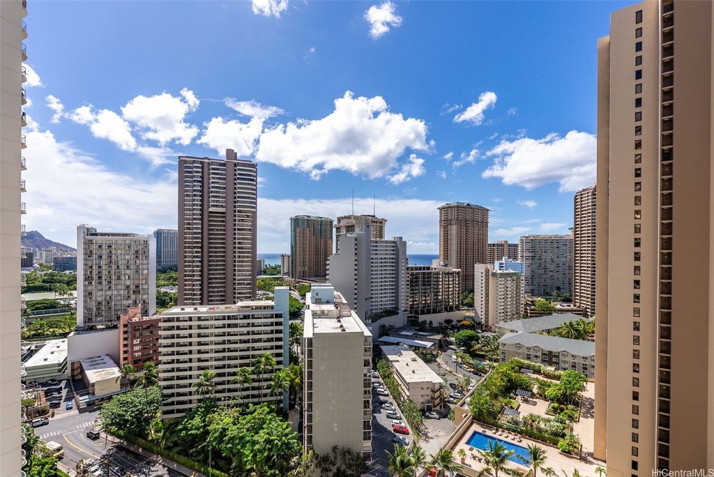 Beautiful 1-bedroom, 1-bath, 1-parking unit in a highly desired building w/stunning OCEAN mountain, and DIAMOND HEAD views. This EAST-FACING unit is on the COOLER, preferred side of the building, where you can enjoy gentle morning sunlight on your LARGE lanai. One of the few buildings in Waikiki with ROOFTOP AMENITIES "”including a pool, fitness center, BBQ area, recreation space, yoga studio, and 360° island views. Don't miss this incredible opportunity to LIVE, LOVE, Waikiki!